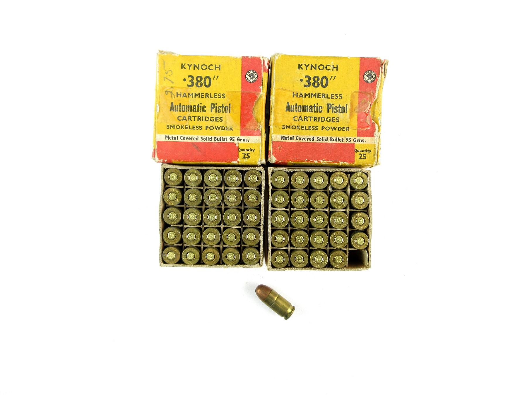 COLLECTIBLE KYNOCH .380 HAMMERLESS AUTO MATIC PISTOL AMMO LOT