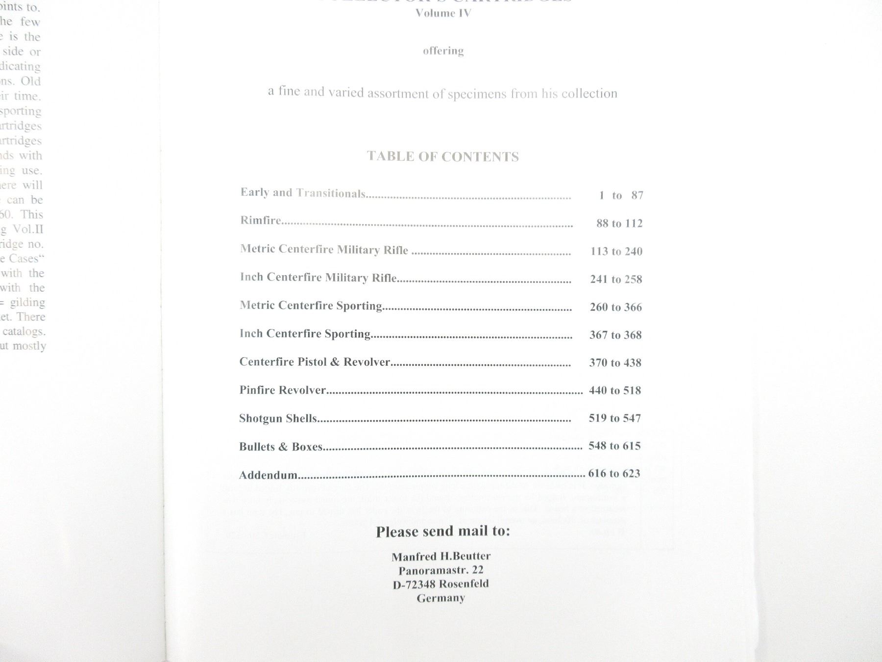 "COLLECTOR'S CARTRIDGES, VOLUME IV OF THE MANFRED H. BEUTTER AUCTION COLLECTION" BOOK
