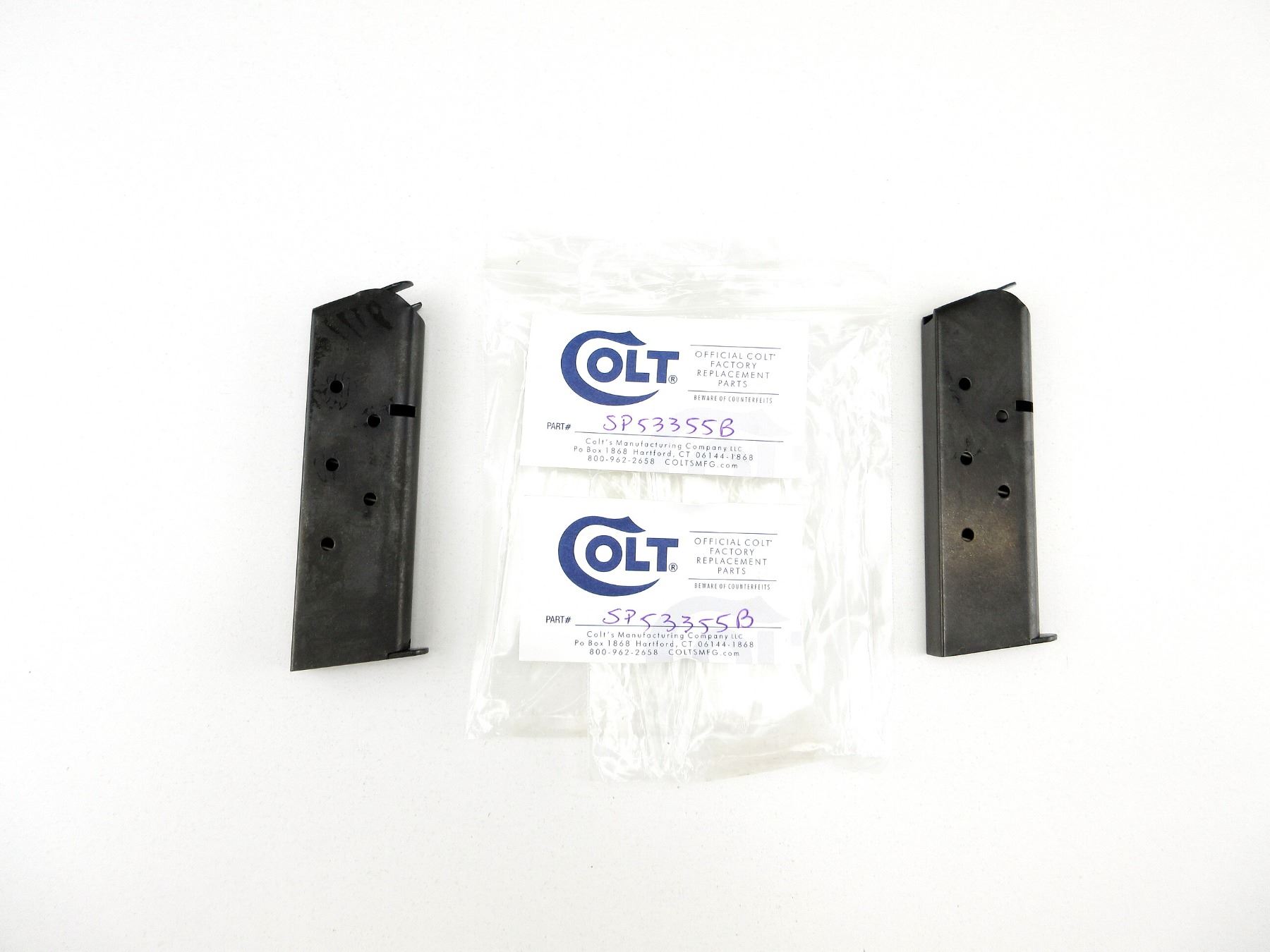LOT INCLUDES; (2) .45 AUTO, 8 ROUND MAGS, BLUED STEEL, BASES MARKED: "COLT, 45 AUTO", FACTORY REPLACEMENT. SEE PHOTOS. PAL REQUIRED.