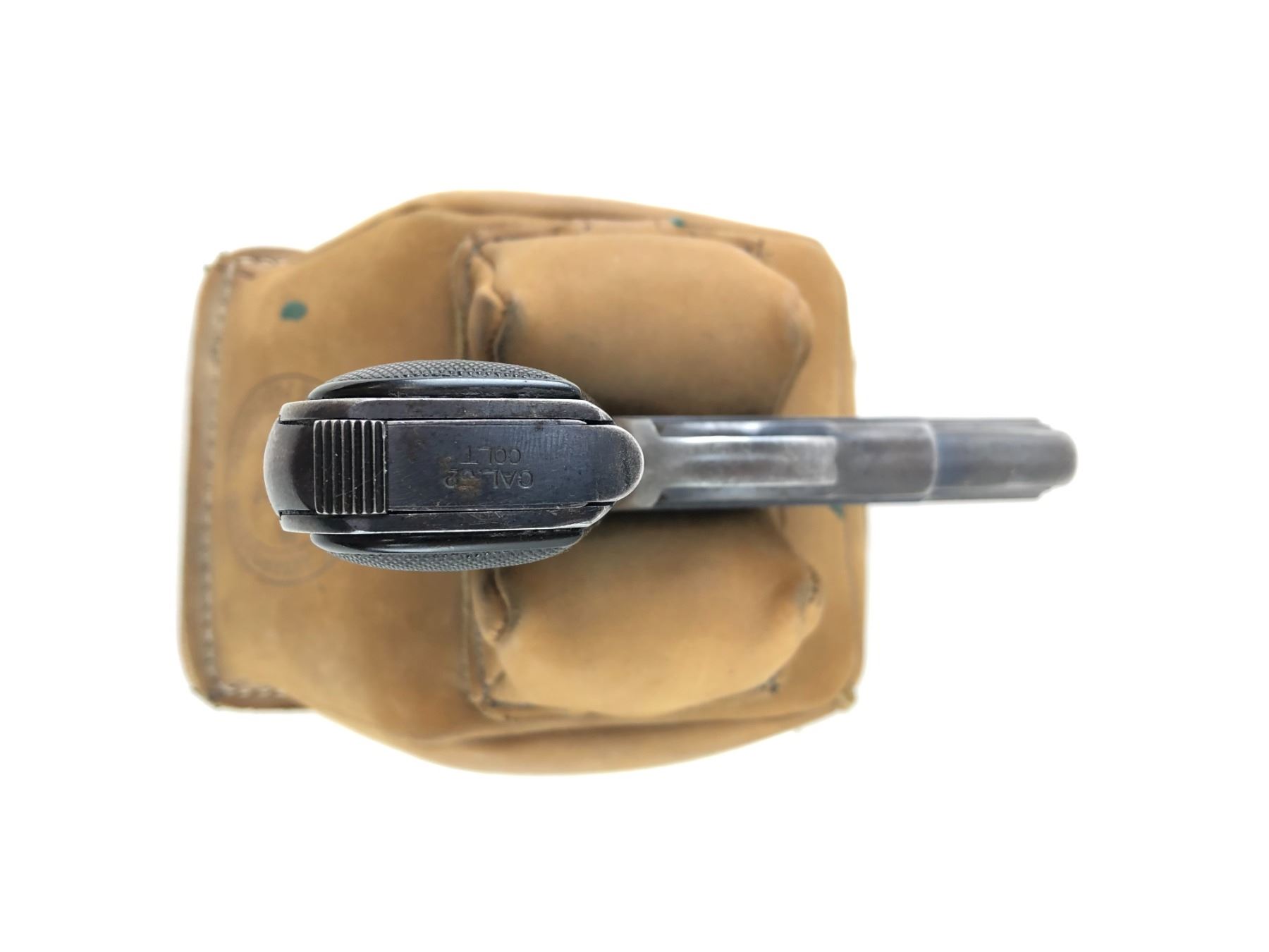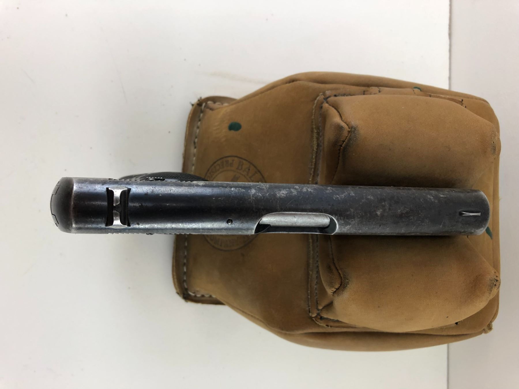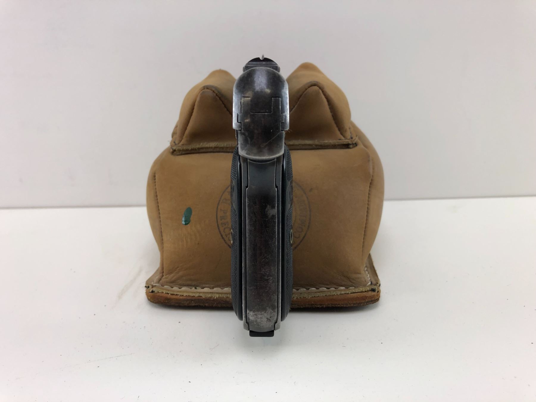 CONDITION: 6/10 , COLT , MODEL: 1903 VEST POCKET HAMMERLESS , CALIBER: 32 AUTO , COMES WITH MAGAZINE , BORE IS GOOD. BLADE FRONT SIGHT, RAISED NOTCH REAR SIGHT. CHECKERED BLACK PLASTIC GRIPS, WITH COLT LOGO. MODELED FINISH. SHOW SOME HANDLING MARKS. , ACTION: SEMI AUTOMATIC , BARREL LENGTH: 95MM , SERIAL # 309377 , CLASS: CANADIAN CLASS PROHIBITED 12-6