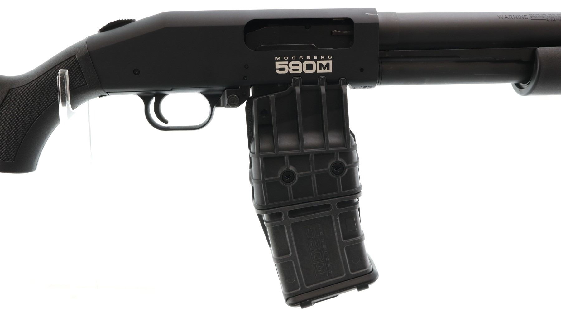 Raffle prize is an New in box, Mossberg, Model: 590 M Mag Fed, Caliber: 12 G x 2 3/4". Comes with Box, Manual, Magazine and Lock. Bore is excellent. Appears as new, may have been test fired in factory. This pump action shotgun has a fixed cylinder choke, brass bead, Parkerized round barrel and full length mag tube, black alloy receiver that is drilled and tapped with plug screws installed and tang safety. Two piece black synthetic stocks, grooved forearm, checkered pistol grip, black vented rubber recoil pad, grip cap and swivel studs. Action: Pump action shotgun, Barrel length: 18.5". Condition: New in Box, Class: Canadian Non Restricted.