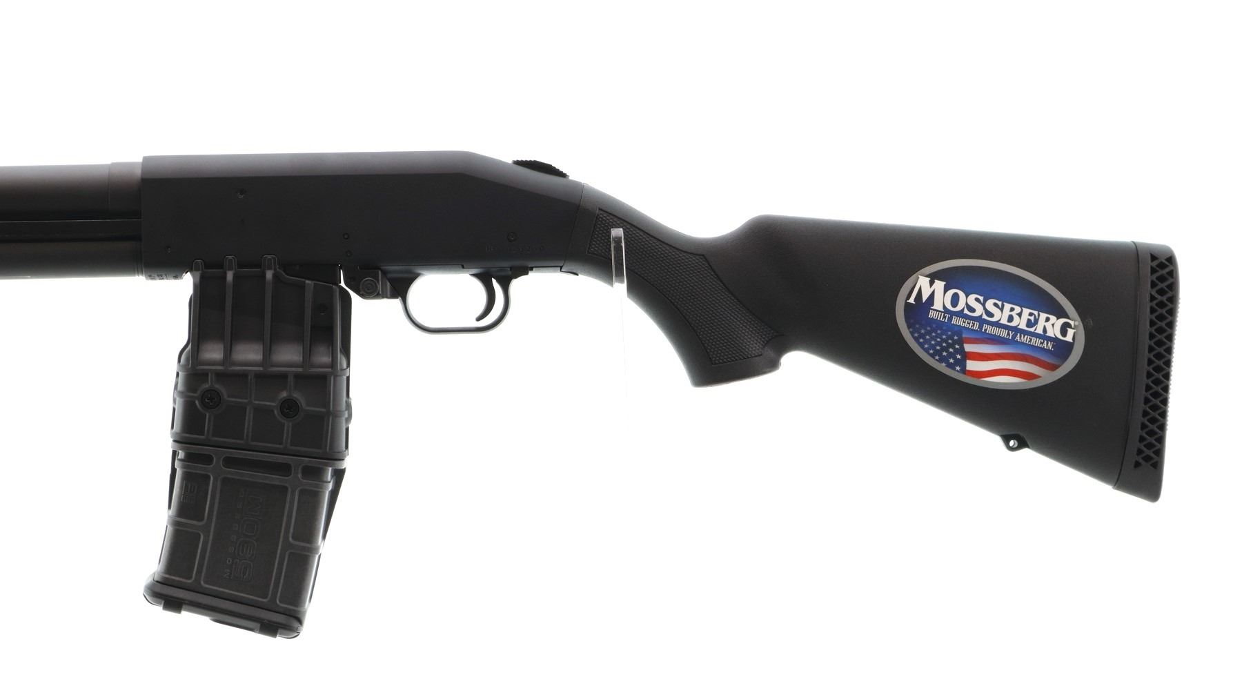 Raffle prize is an New in box, Mossberg, Model: 590 M Mag Fed, Caliber: 12 G x 2 3/4". Comes with Box, Manual, Magazine and Lock. Bore is excellent. Appears as new, may have been test fired in factory. This pump action shotgun has a fixed cylinder choke, brass bead, Parkerized round barrel and full length mag tube, black alloy receiver that is drilled and tapped with plug screws installed and tang safety. Two piece black synthetic stocks, grooved forearm, checkered pistol grip, black vented rubber recoil pad, grip cap and swivel studs. Action: Pump action shotgun, Barrel length: 18.5". Condition: New in Box, Class: Canadian Non Restricted.