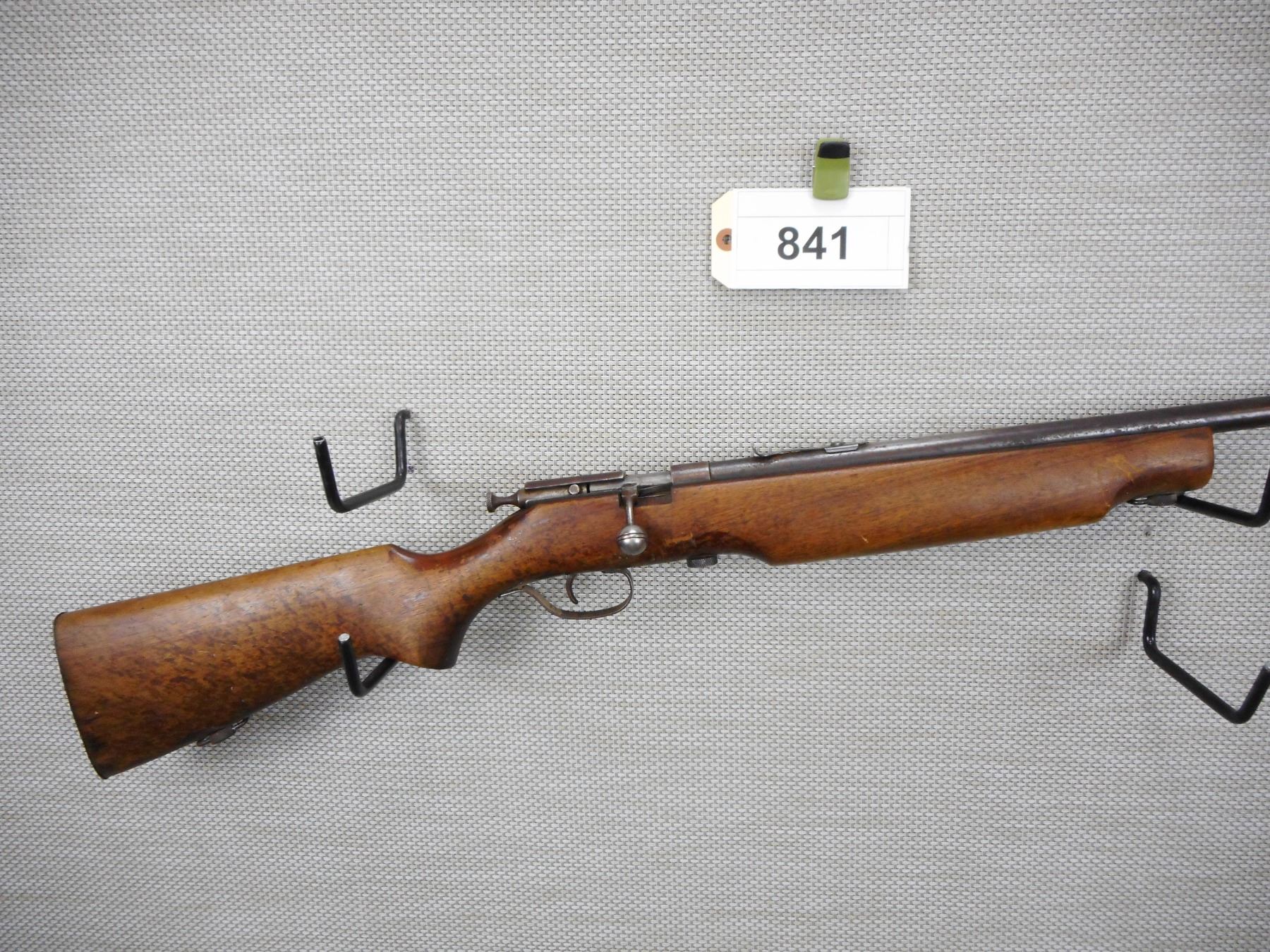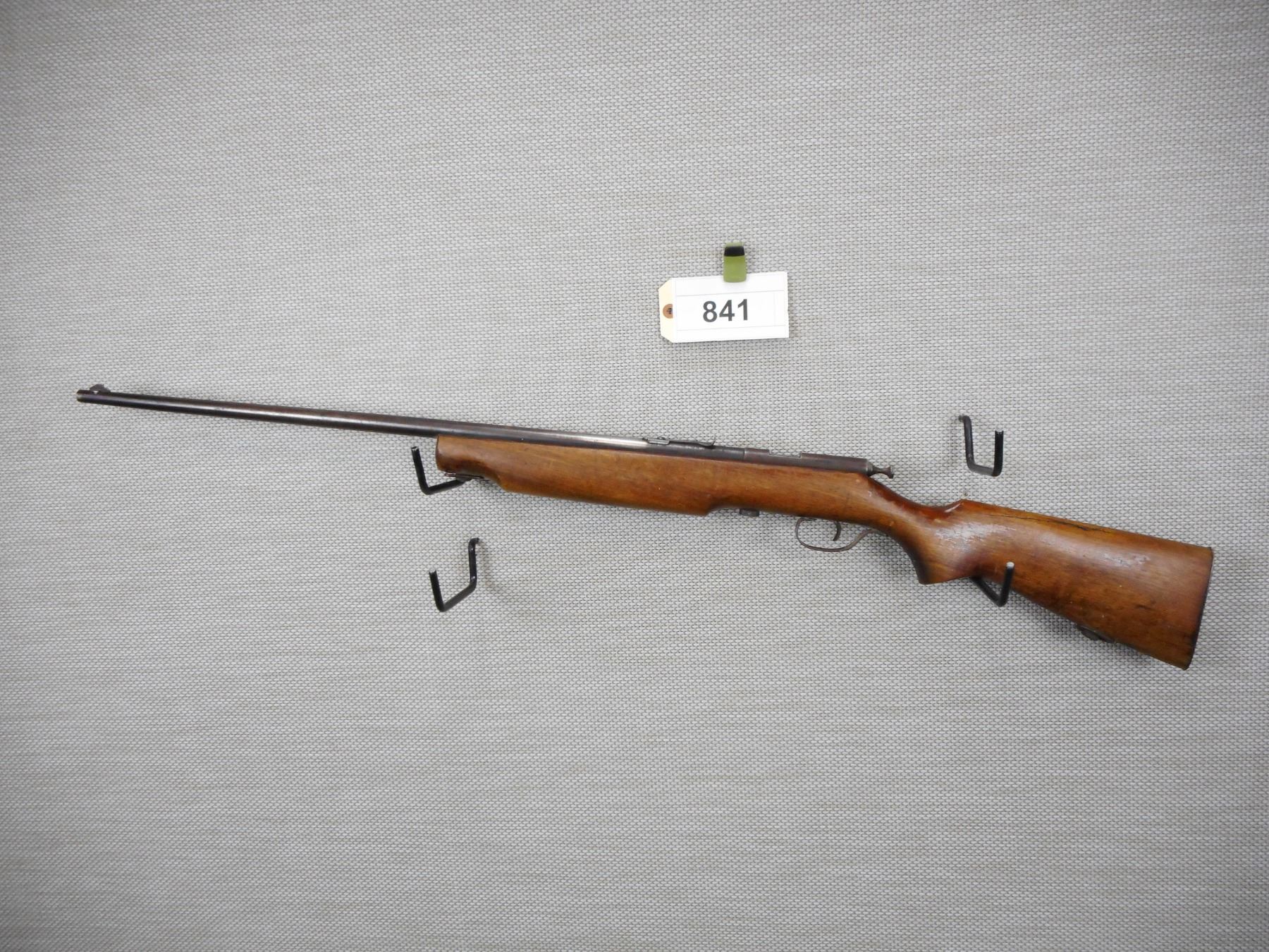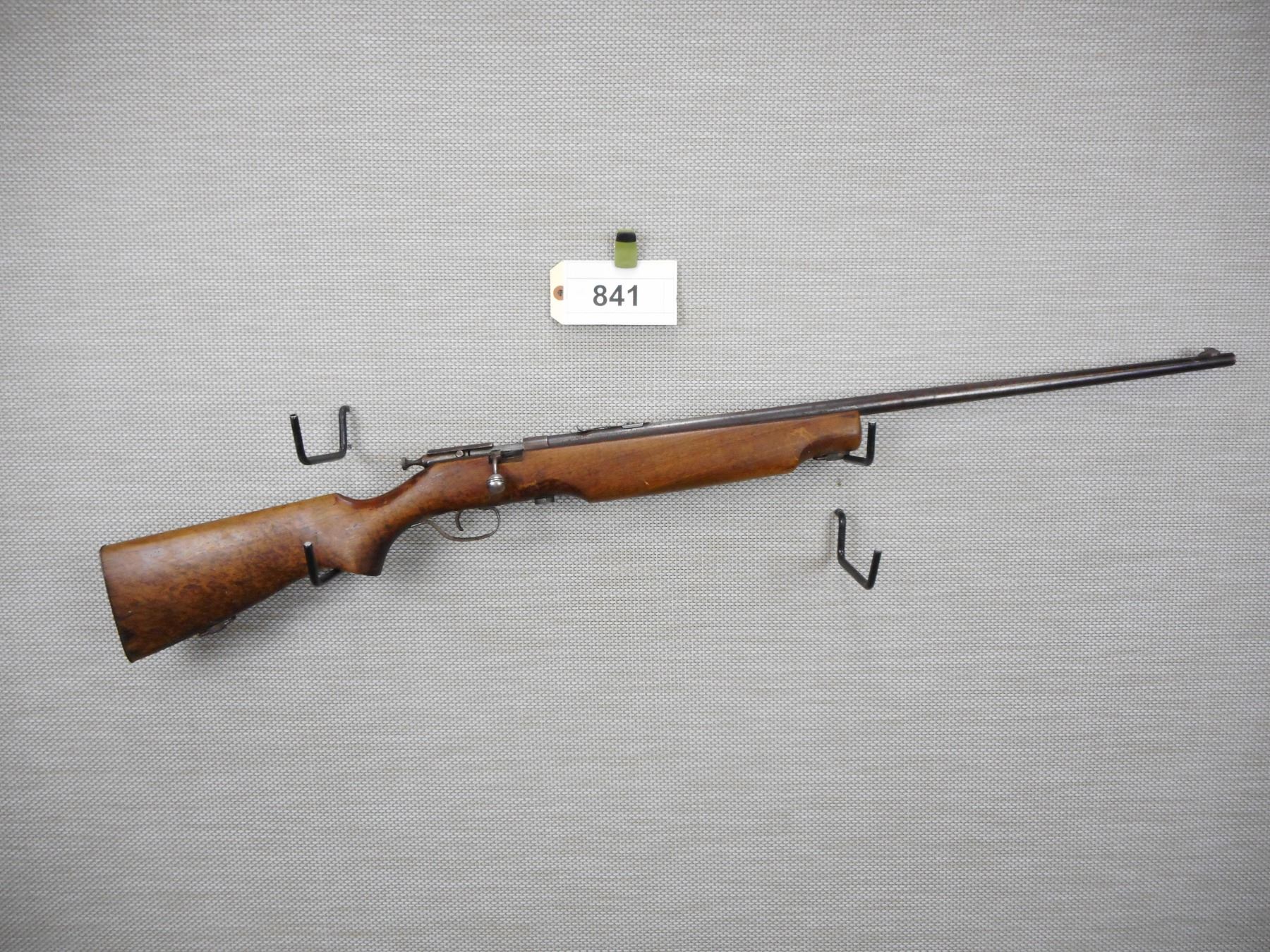 COOEY , MODEL: 75 , CALIBER: 22 LR , BORE IS GOOD, BLADE FRONT AND ADJUSTABLE REAR SIGHT MISSING THE ELEVATOR, SHOWS EXTENSIVE HANDLING MARKS, STEEL BUTT PLATE , ACTION: BOLT ACTION SINGLE SHOT RIFLE , BARREL LENGTH:27" , CONDITION: 5/10 , SERIAL # N/A , CANADIAN CLASS NON RESTRICTED