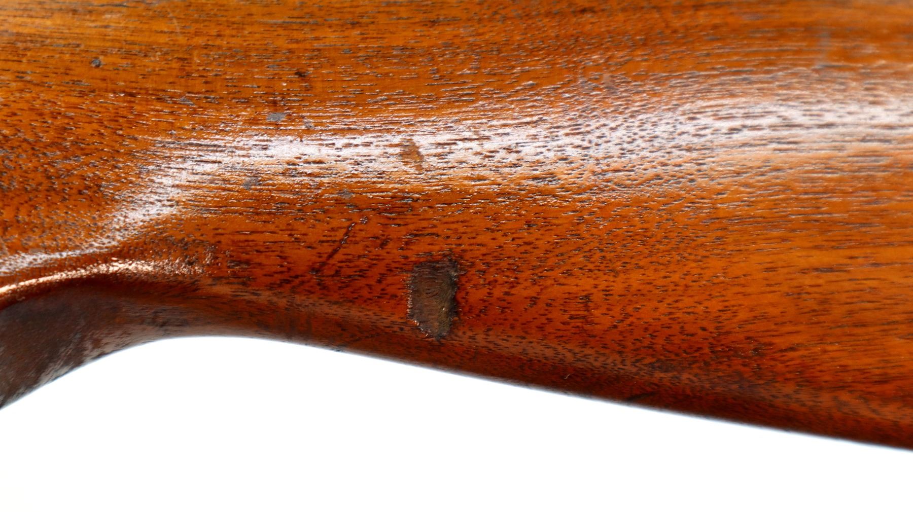 Wear: Metal finish turning brown with light rust, scratches, handling marks and wear. Stock shows marks, scratches and wear.