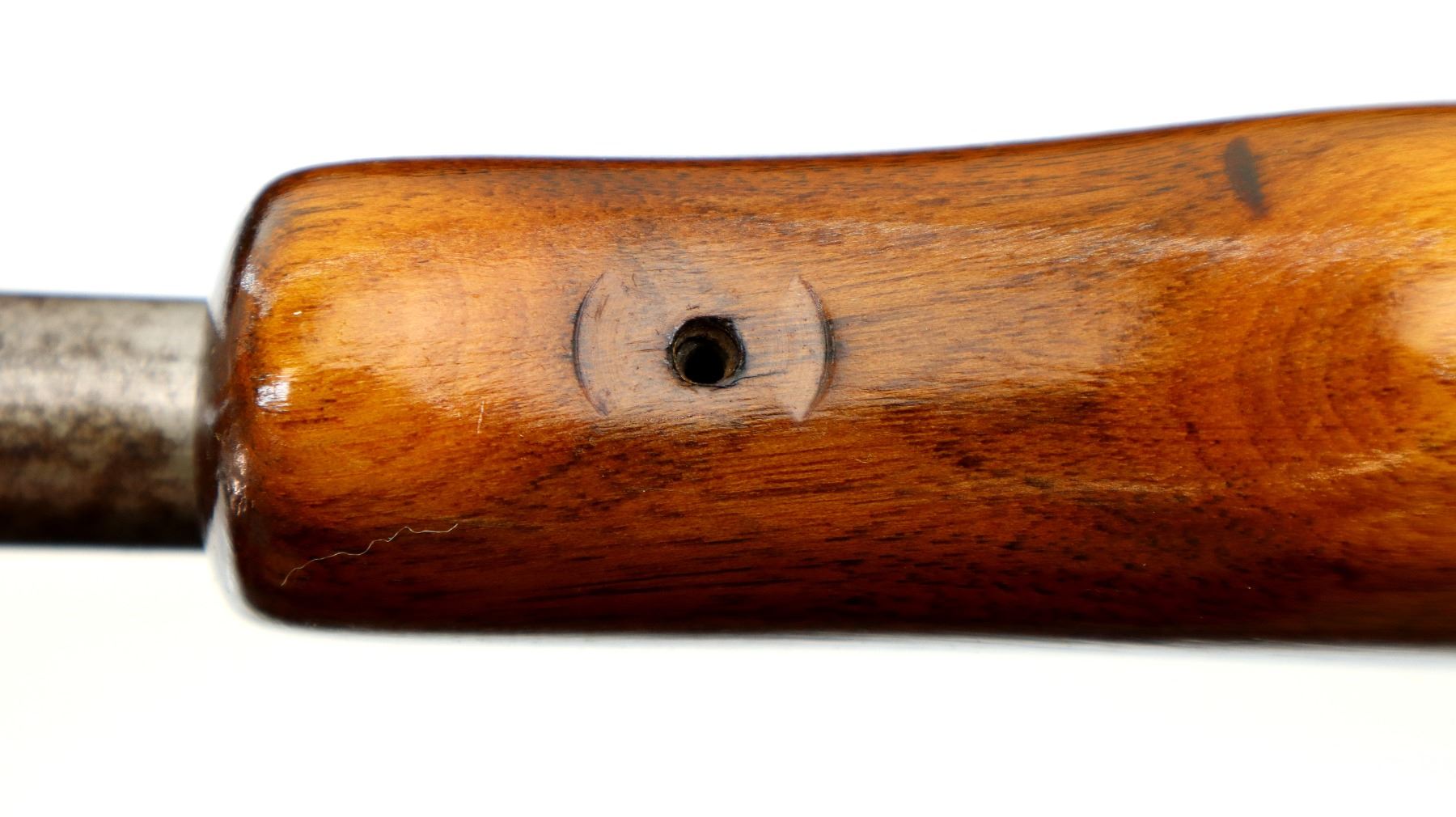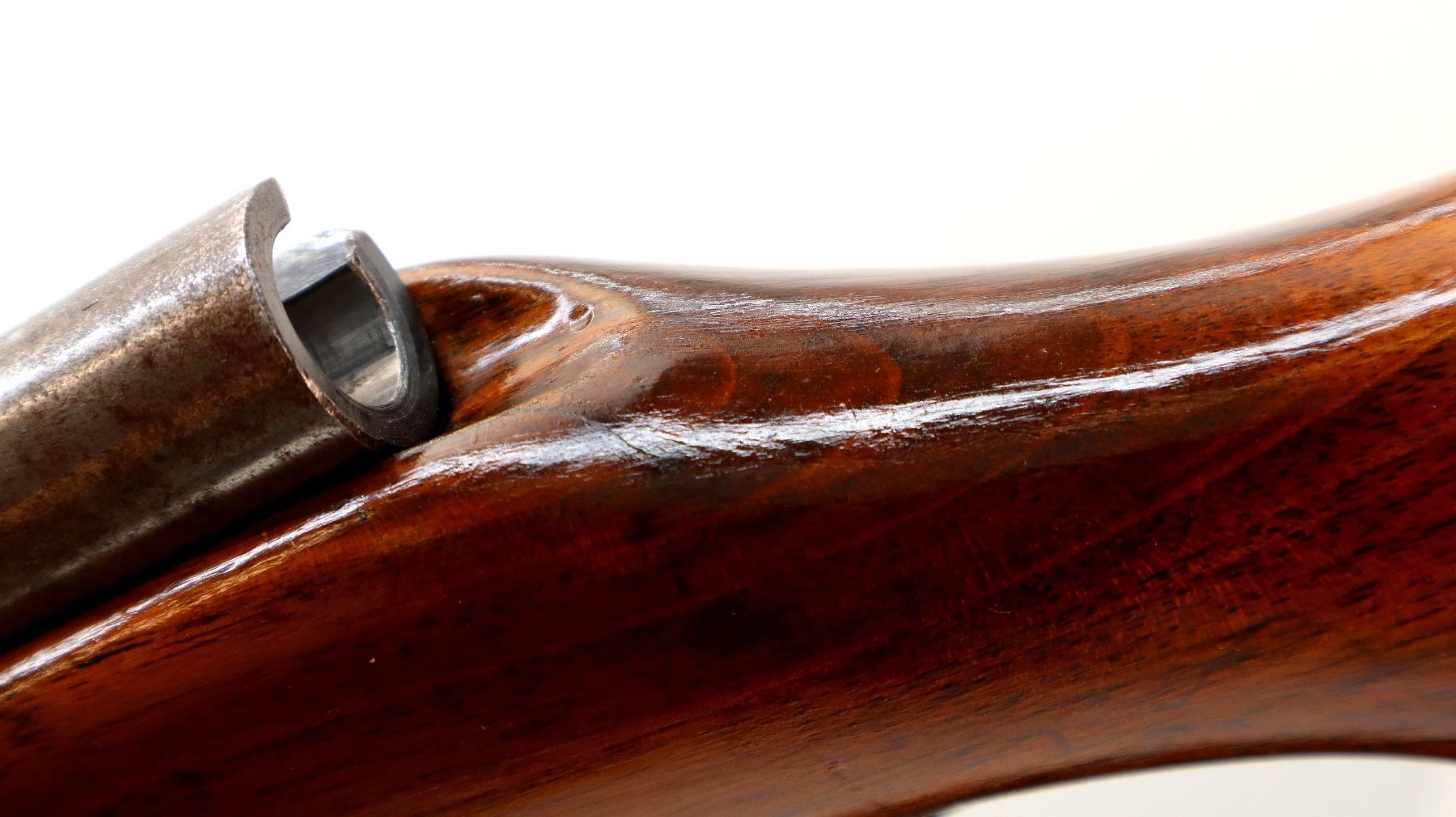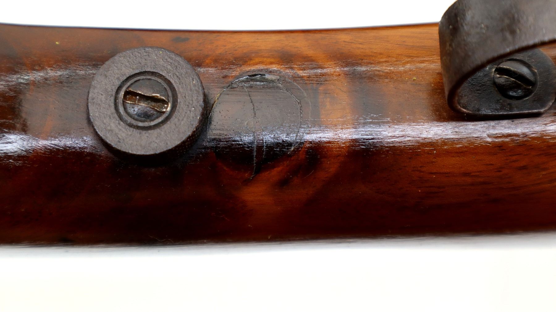 Wear: Metal finish turning silver grey with pitting, light rust, scratches, handling marks and wear. Stock shows marks, scratches and wear.