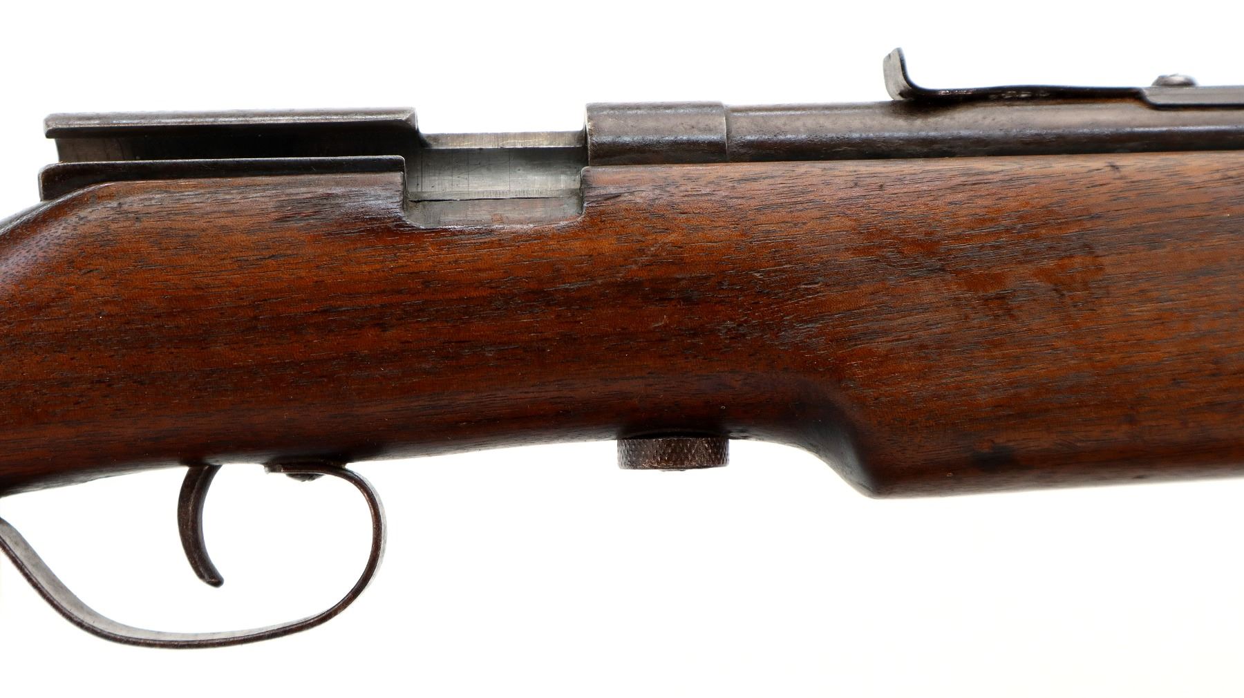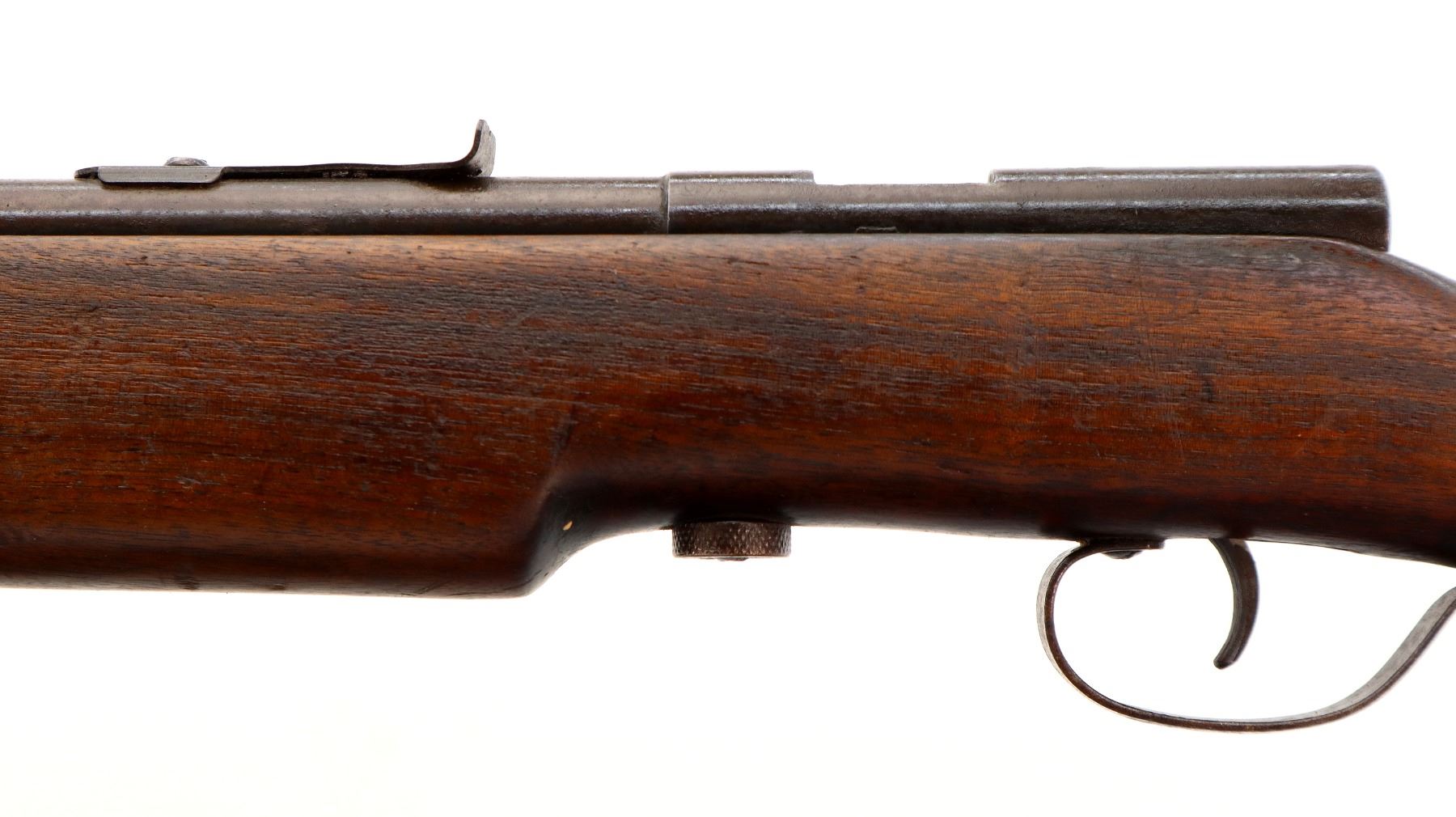 Main Description: Blade front sight, u notched rear sight missing elevator, missing complete bolt assembly. One piece wood stock, forend is cracked, pistol grip, smooth steel butt plate, sling swivels.