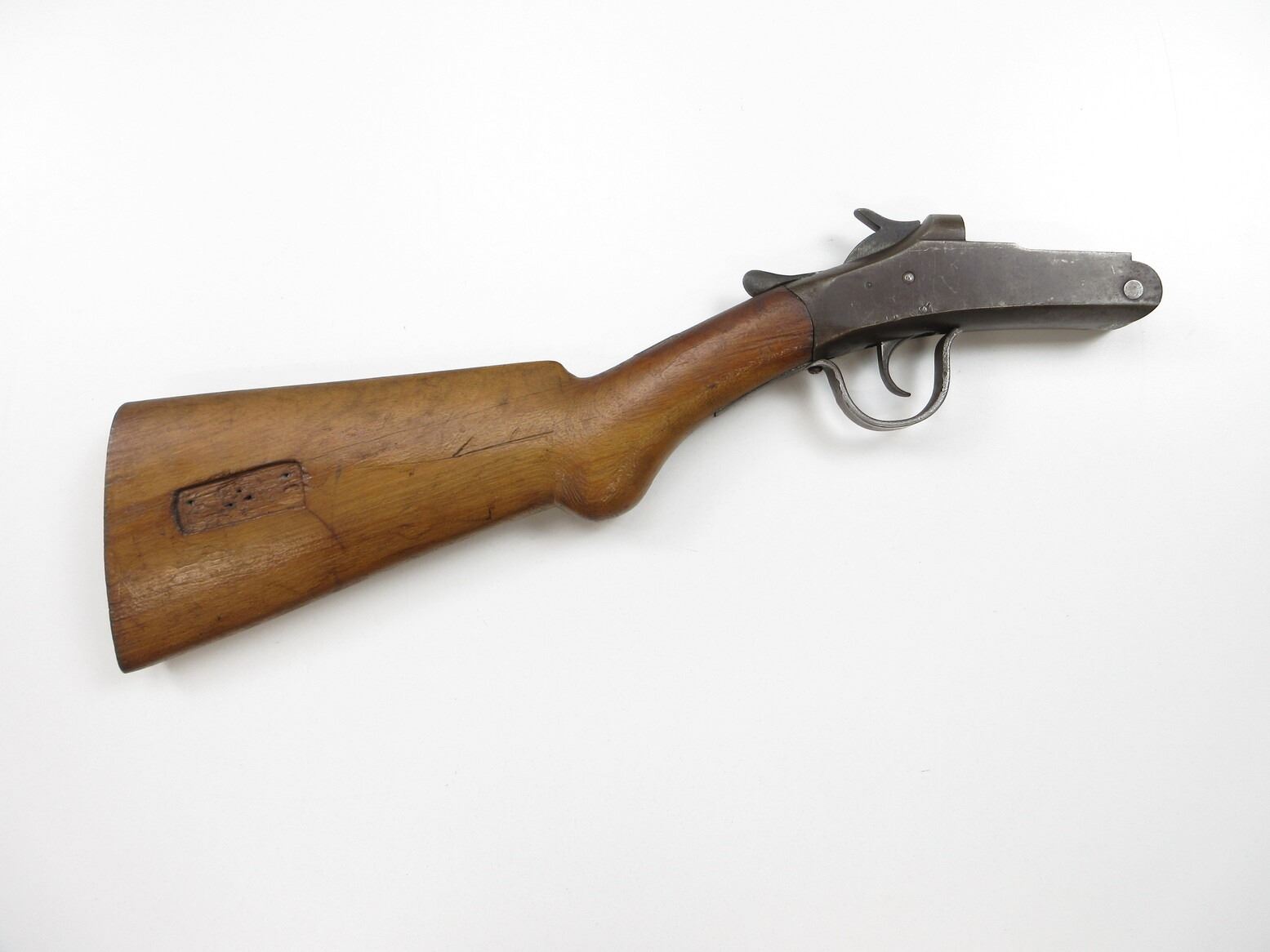 12 GAUGE, SERIAL # 210199, LOT INCLUDES; (1) TRIGGER / HAMMER MECH, (1) TRIGGER GUARD, (1) BREAK ACTION LEVER, (1) STOCK, WOOD, APPEARS REPAIRED, SOME WEAR / TEAR, MAY REQUIRE FITTING. PAL REQUIRED FOR THIS LOT.