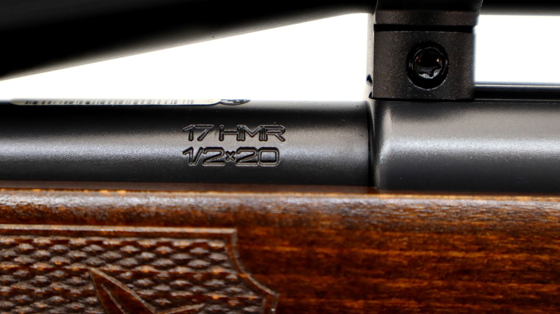 Main Description: May have been test fired in factory. No sights, Matte blue finish, barrel threaded at muzzle with cap, grooved receiver with Bushnell 3-9x36 Rimfire scope installed, clear optics with BDC reticle and illuminated red which functions. One piece wood stock, checkered forearm and pistol grip, black rubber recoil pad, swivel studs, retains factory sticker.