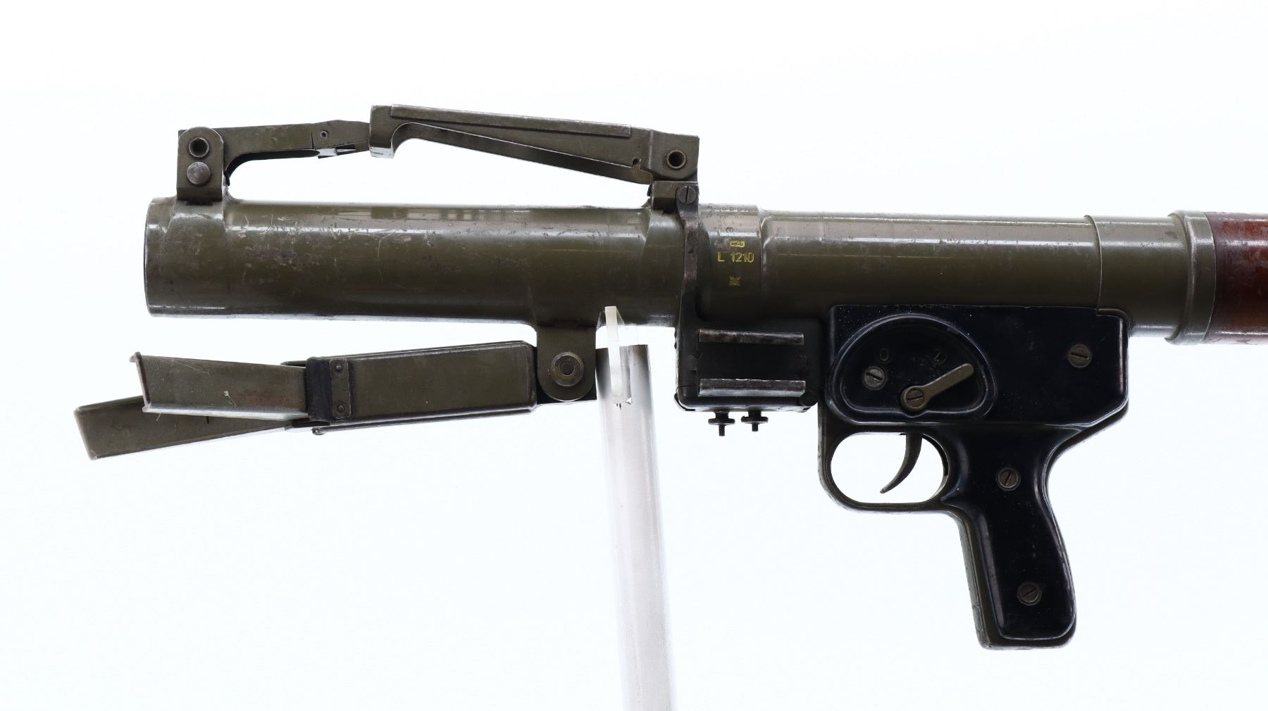 CZECH, MODEL: VZ0R27, CALIBER: 45MM, BARLEY CORN FOLDING FRONT SIGHT WITH HOOD, GRADUATED U NOTCHED REAR SIGHT, GREEN PAINTED METAL FINISH, BROWN FIBER GLASS SHIELD ON REAR PORTION, ROUND GUARD ON REAR OF TUBE, SLING SWIVELS. TWO PIECE BLACK POLYMER PISTOL GRIPS, ATTACHED FOLDING BIPOD. METAL FINISH SHOWS SCRATCHES, HANDLING MARKS AND WEAR. POLYMER PORTIONS SHOW DINGS, SCRATCHES AND WEAR. , ACTION: DEACTIVATED, BARREL LENGTH: 42" OAL, SERIAL # L1210, CONDITION: 7/10, CLASS: CANADIAN DEACTIVATED NO PAL REQUIRED