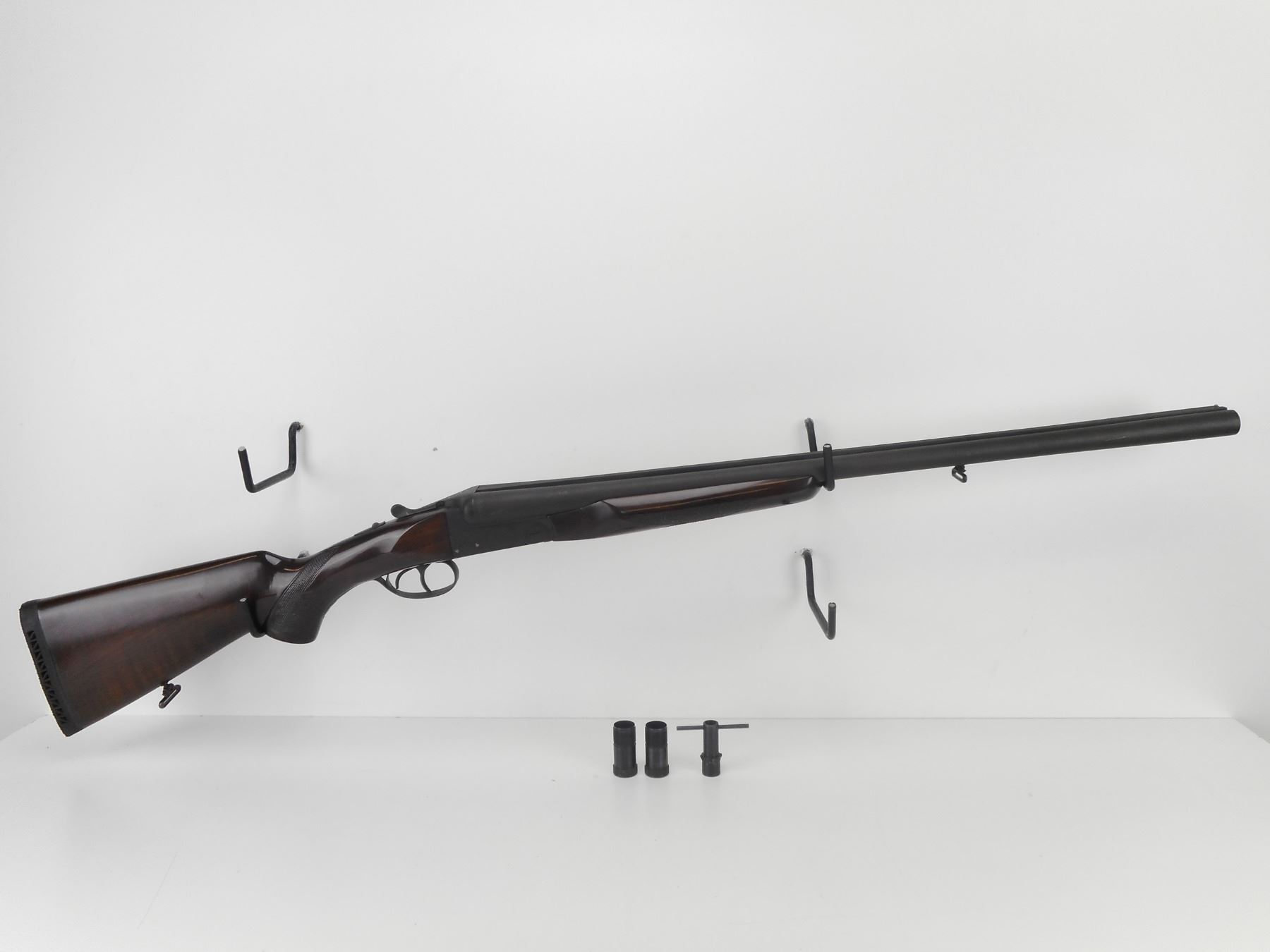 DAMIAN BENGOA , MODEL: SIDE BY SIDE , CALIBER: 12 GA X 3" , COMES WITH 4 CHOKES AND WRENCH. EXCELLENT BORES. FULL AND MODIFIED REMOVABLE CHOKES. BEAD FRONT SIGHT. TWO PIECE CHECKERED HARDWOOD STOCK WITH BEAVERTAIL FOREND AND FULL PISTOL GRIP. VENTED RUBBER RECOIL PAD. SLING SWIVEL LOOPS. EXTRACTORS. DUAL TRIGGERS. 14 1/2 LOP. SHOWS SOME HANDLING MARKS. BARREL LENGTH: 26" , CONDITION: 8/10 , STOCK # NR10667, SERIAL # 150284, CLASS: CANADIAN NON RESTRICTED CLASS