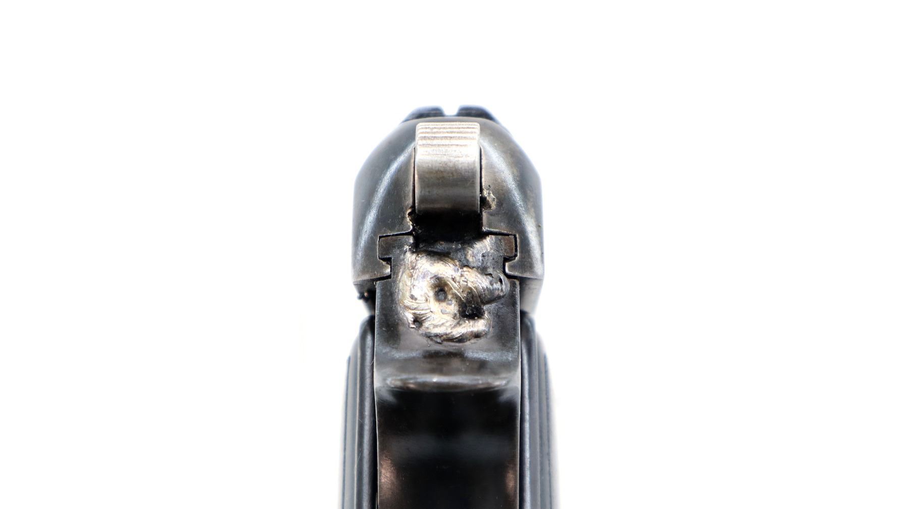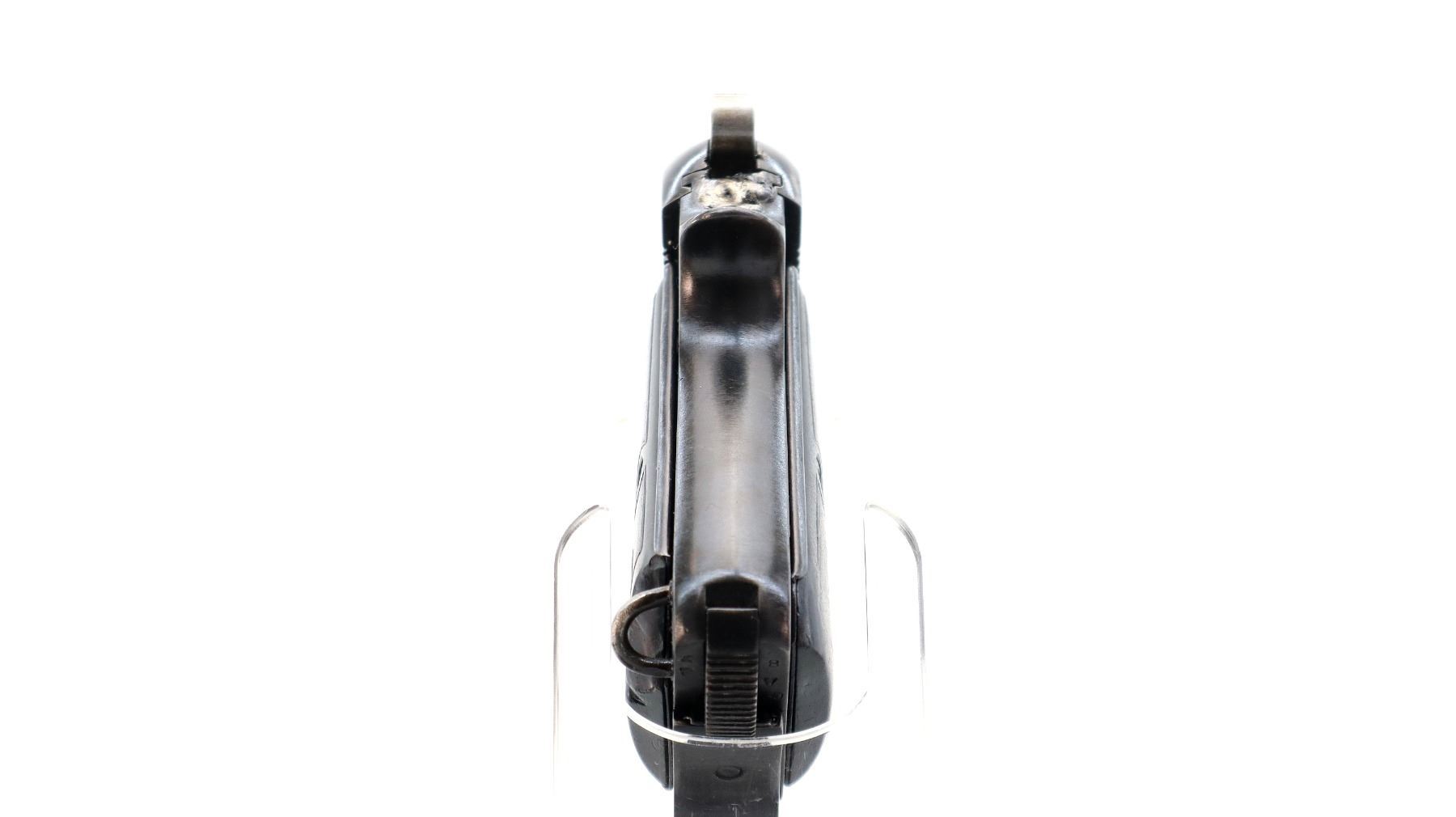 Main Description: This deactivation has two visible welds, action does not function, magazine is not removable cannot be disassembled. Blade front sight, u notched rear sight, round barrel, grooved spur hammer and smooth trigger, lanyard ring, heel mag release. Two piece PB logo black polymer grips, grooved finger rest.