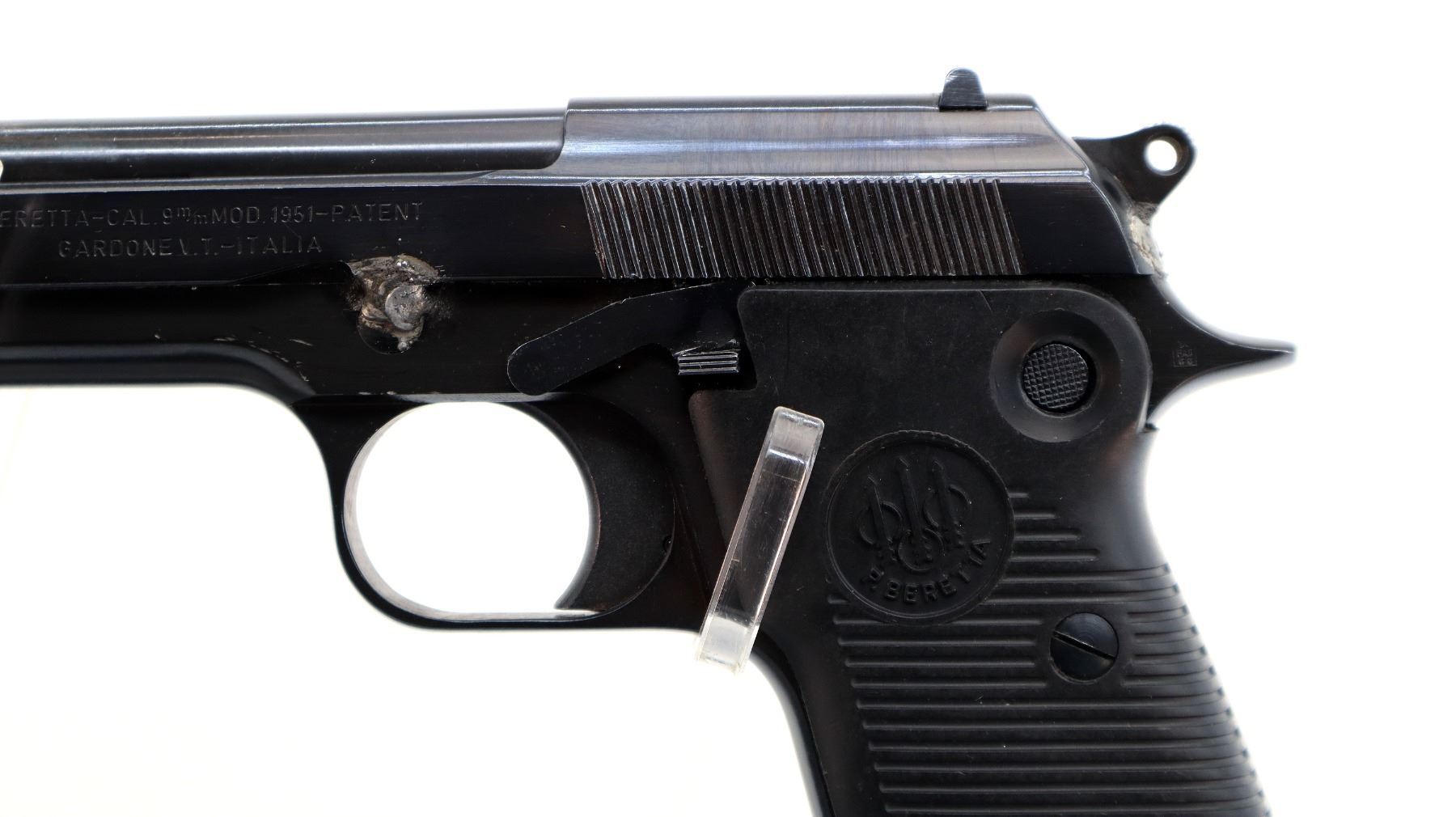 Main Description: This deactivation has three visible welds, action does not function magazine is not removable cannot be disassembled. Blade front sight, u notched rear sight, blued finish, grooved spur hammer and smooth trigger, crossbolt safety, heel mag release, lanyard ring. Two piece grooved black polymer Beretta logo grips. Grooved finger rest mag plate.
