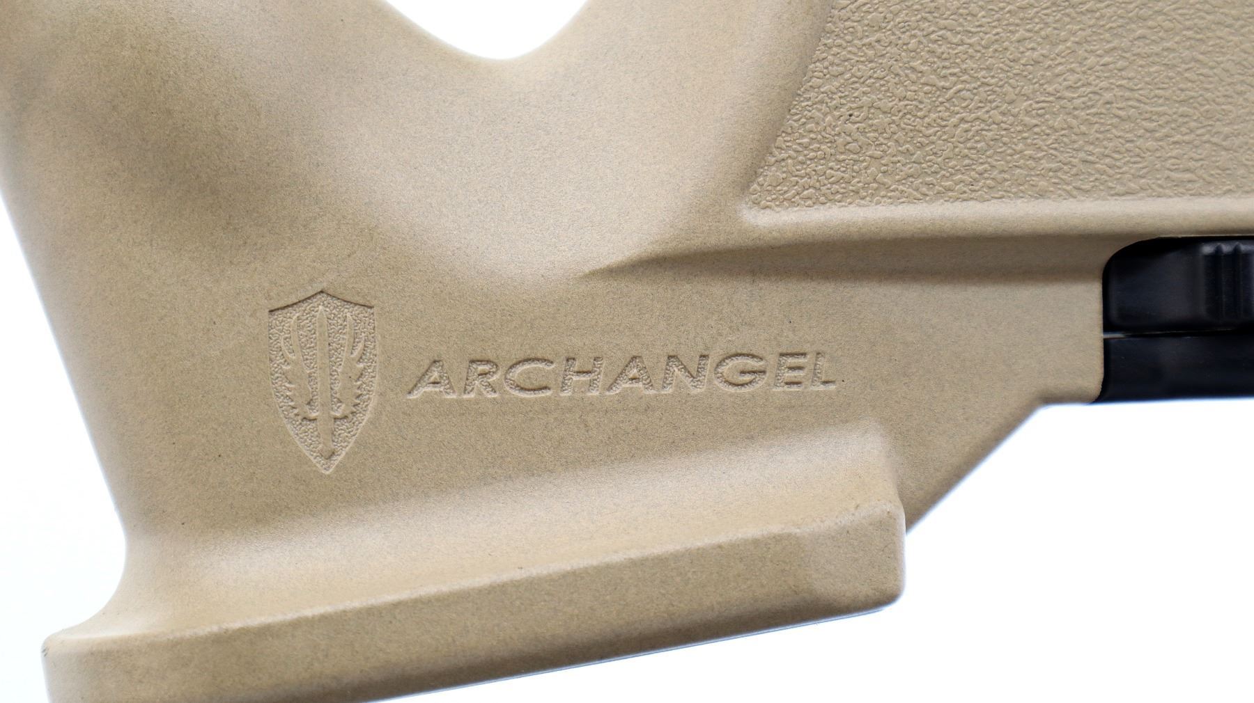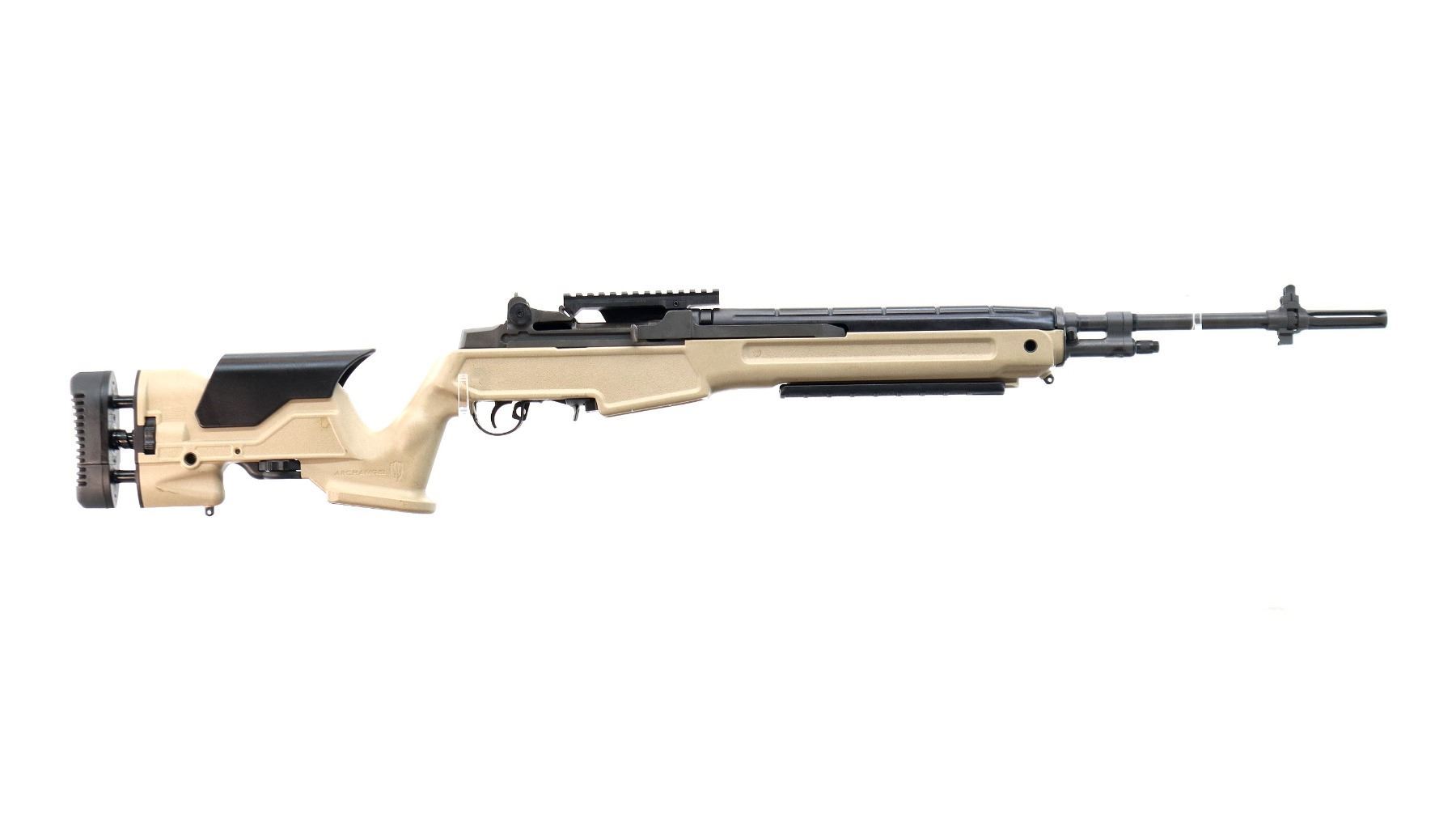 Main Description: This deactivation has three visible welds showing, action does not function, magazine is not removable cannot be disassembled. Blade front sight with ears and ramp, adjustable rear peep sight, Parkerized metal finish, grooved black painted handguard, receiver has a scope mount installed. One piece Arch Angel FDE Tactical stock, finger grooved forearm with rail and cover on the bottom. Thumb rest pistol grip, adjustable cheek rest, grooved black rubber recoil pad, QD sling and swivel studs on front and rear, flashider with integral bayonet lug.