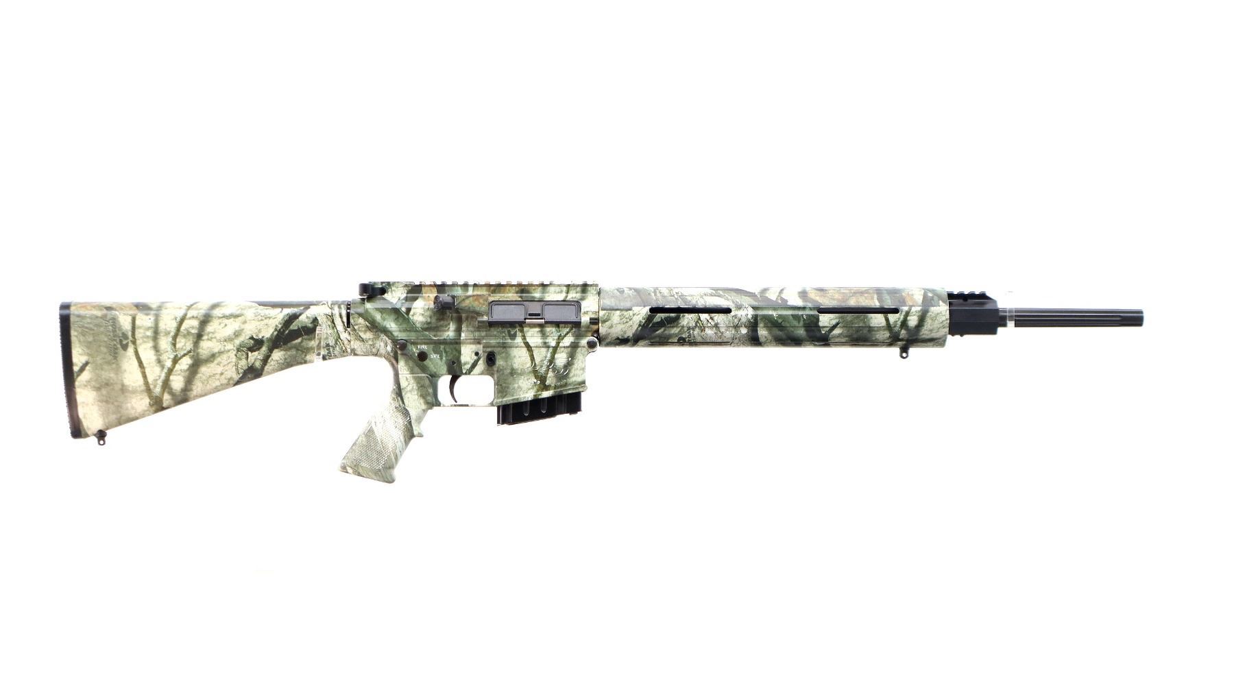 Main Description: This deactivation has five visible welds showing, action does not function, magazine is not removable cannot be disassembled. No sights, fluted Parkerized barrel with gas block and short rail, Mossy Oak Treestand camo overall, ventilated free float forearm, receiver has integral scope rail. Two piece synthetic stocks, checkered pistol grip, A2 butt stock with black polymer butt plate and trap, swivel studs.
