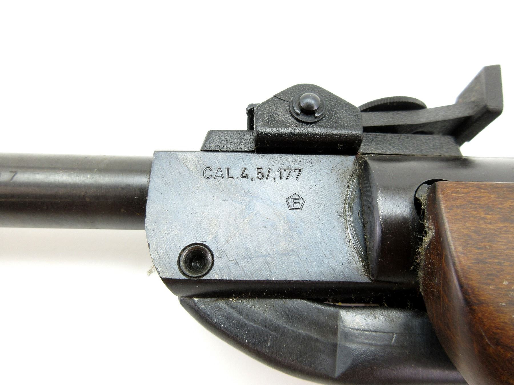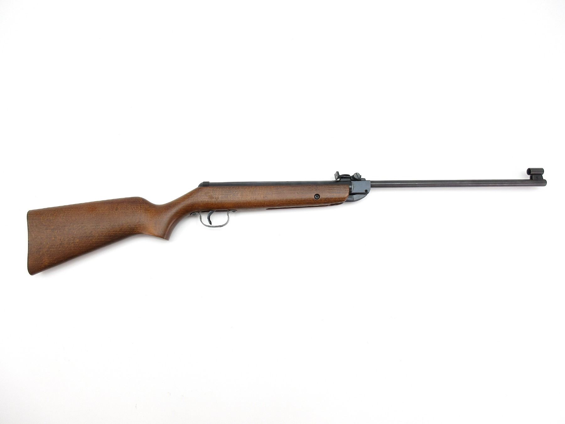 (1) .177 CAL PELLET, SPRING / AIR POWERED, SINGLE SHOT, BREAK ACTION, METAL CONSTRUCTION, WITH WOOD STOCK, INCLUDES FRONT GLOBE & REAR ADJUSTABLE SIGHTS, SERIAL NO. 03309227, NO COCKING ISSUES, NOT FULLY TESTED. SEE PHOTOS.