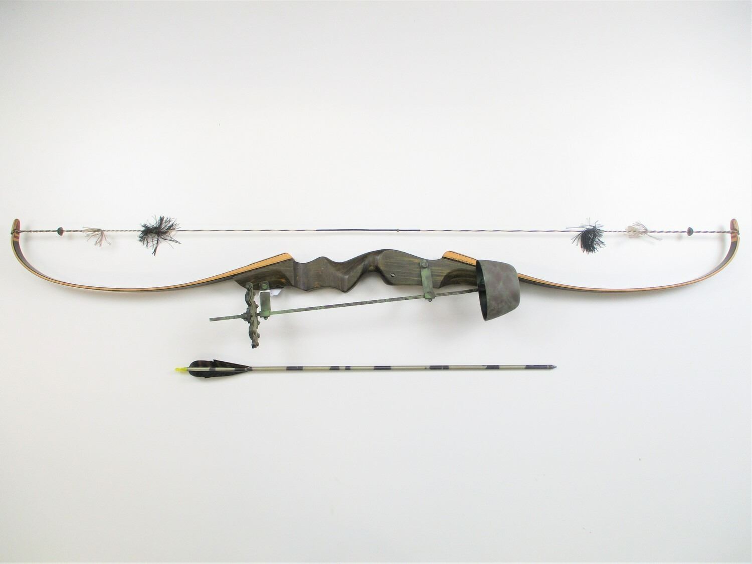 DON ASSENHEIMER RE-CURVE BOW . APPROX. 60LB DRAW WEIGHT, APPROX. 28" DRAW LENGTH, APPROX. 59" OAL, LEFT HANDED RECEIVER, INCLUDES QUIVER & 1 ARROW.