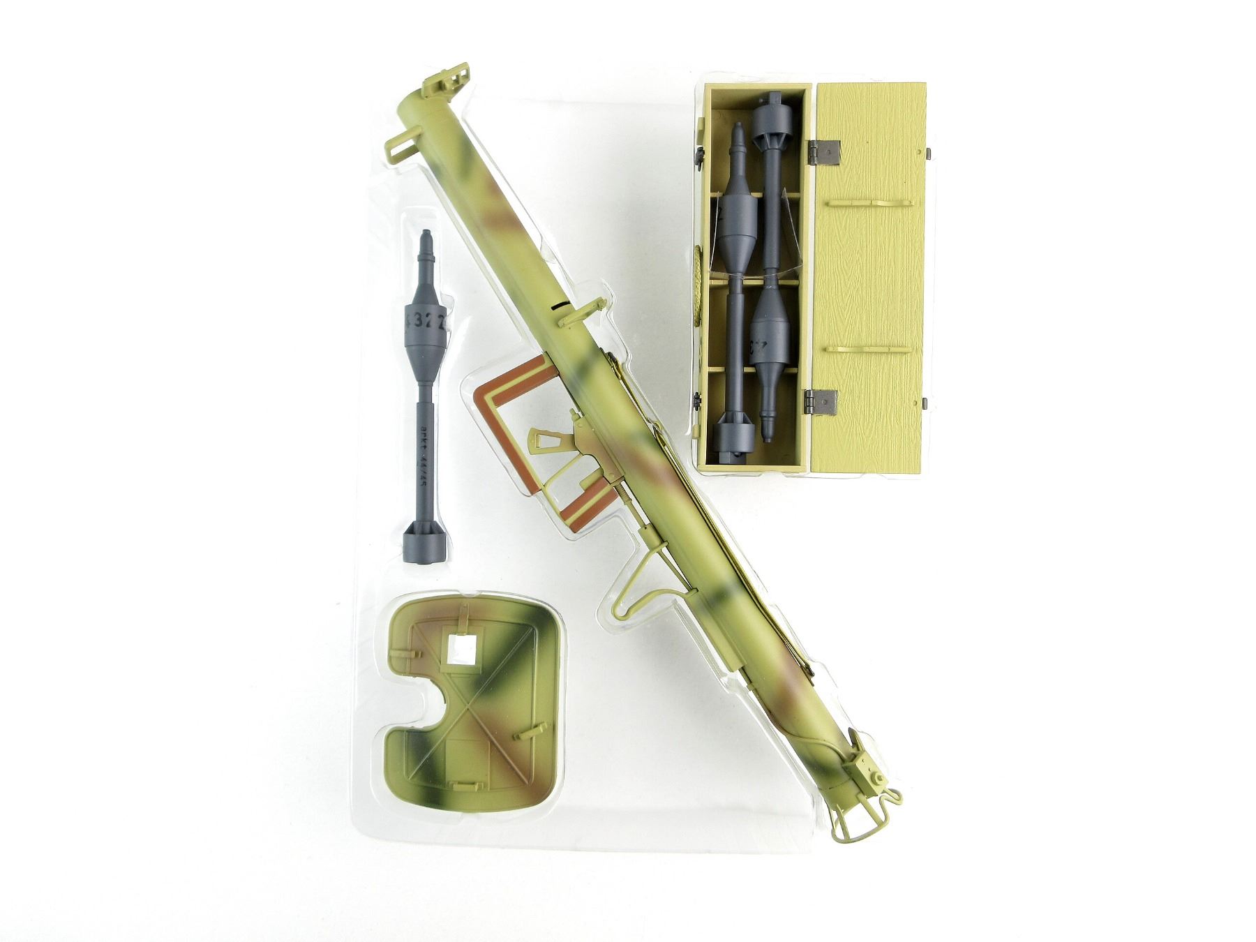 (1) "PANZERSCHRECK" WEAPONS SET, COMES WITH RPZB 54 ANTI-TANK ROCKET LAUNCHER, SHIELD FOR LAUNCHER, 3 ROCKETS & CRATE, 1/6 SCALE, AUTHENTIC DETAILS / MARKINGS, APPEARS NOS. SEE PHOTOS.
