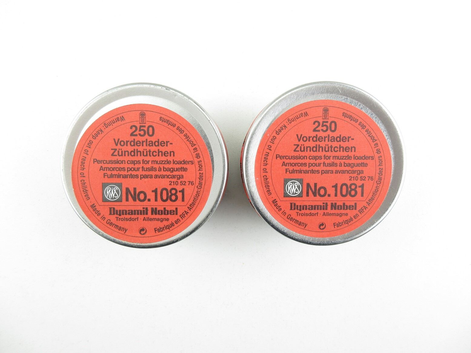 DYNAMIT NOBLE NO. 1081 MUSKET CAPS LOT. LOT INCLUDES; APPROX. (500) MUSKET CAPS, (2) UNOPENED TIN.