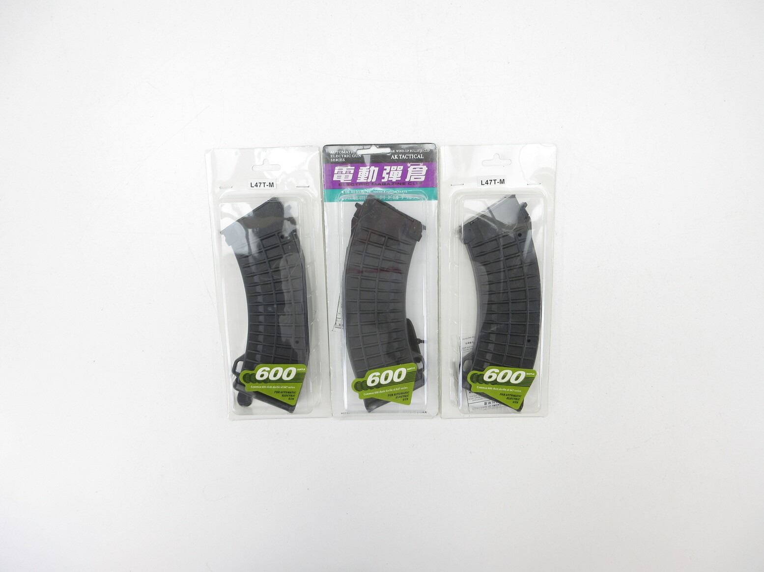 ECHO1 AK47 WAFFLE STYLE AIRSOFT RIFLE MAGAZINES LOT. LOT INCLUDES; (3) 6MM AIRSOFT BB, 600 ROUND MAG, HIGH CAP, POLYMER CONSTRUCTION, WITH WAFFLE PATTERN, MADE IN CHINA, NOS, UNOPENED. SEE PHOTOS.