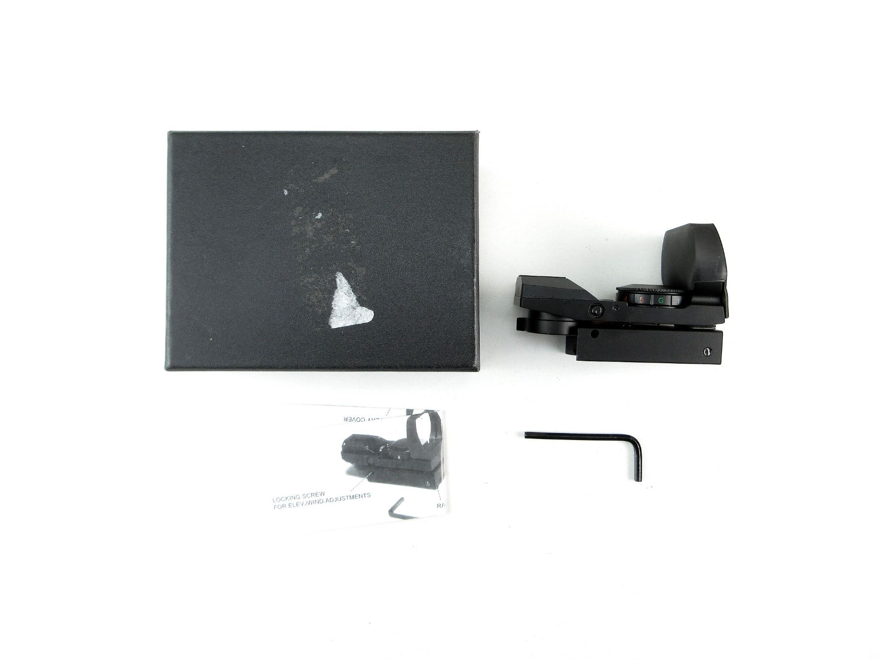 (1) CLEAR OPTICS, FOUR RETICLE OPTIONS, WORKING RED / GREEN ILLUMINATION, WITH VARIOUS BRIGHTNESS SETTINGS, UNMARKED, WITH LENS COVER, INSTRUCTION MANUAL & ORIGINAL BOX. SEE PHOTOS.