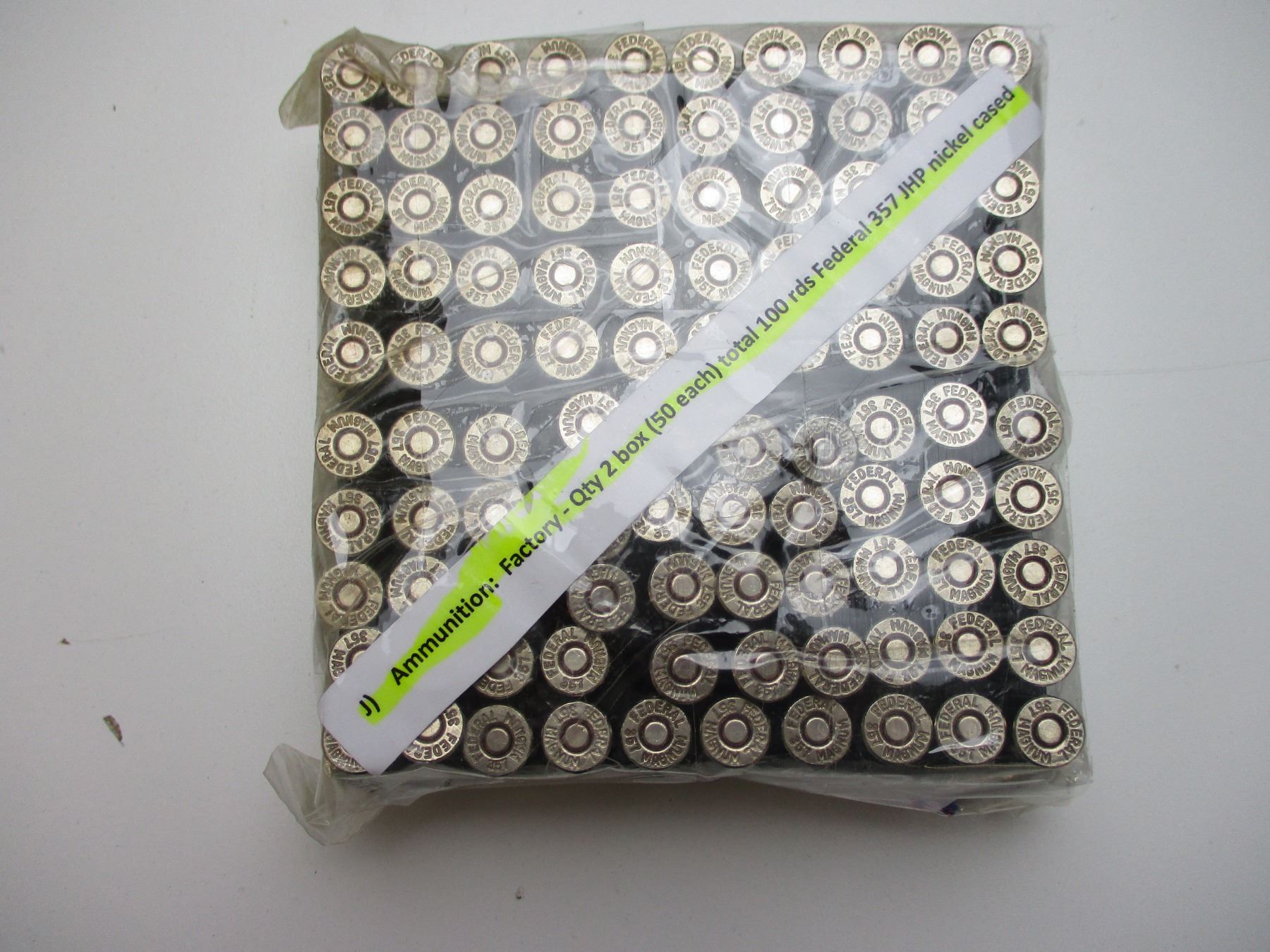 THERE ARE NEW SHIPPING RESTRICTIONS, PLEASE MAKE SURE YOU HAVE READ AND CONFIRMED WE CAN SHIP TO YOU BEFORE BIDDING ON THIS LOT. PLEASE SEE LOT 0 IN THIS SESSION. NO REFUNDS WILL BE ISSUED, OR BIDS RETRACED. , FEDERAL .357 MAG AMMO , 100 RNDS, JHP