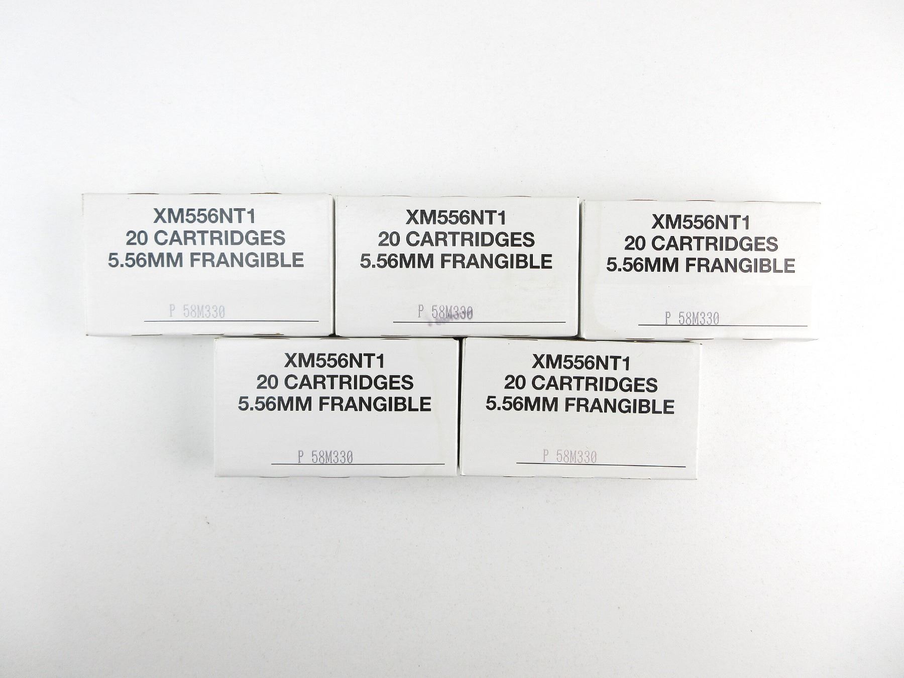 LOT INCLUDES; APPROX. (100) RNDS, 50 GRNS (STATED ON SHIPPING BOX NOT CONFIRMED), FRANGIBLE SP, UNOPENED, MAY HAVE SOME WATER DAMAGE.