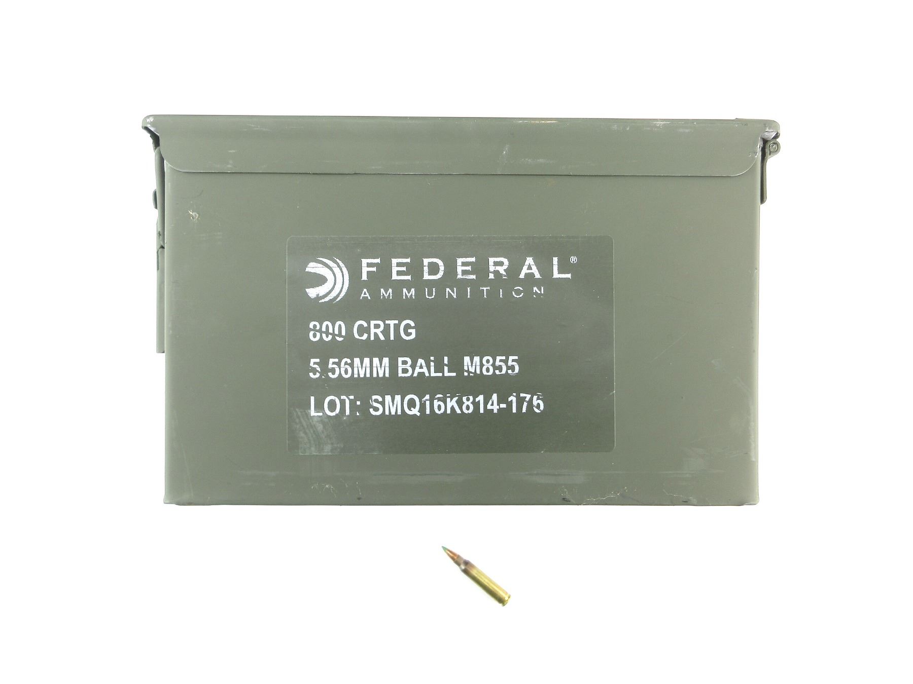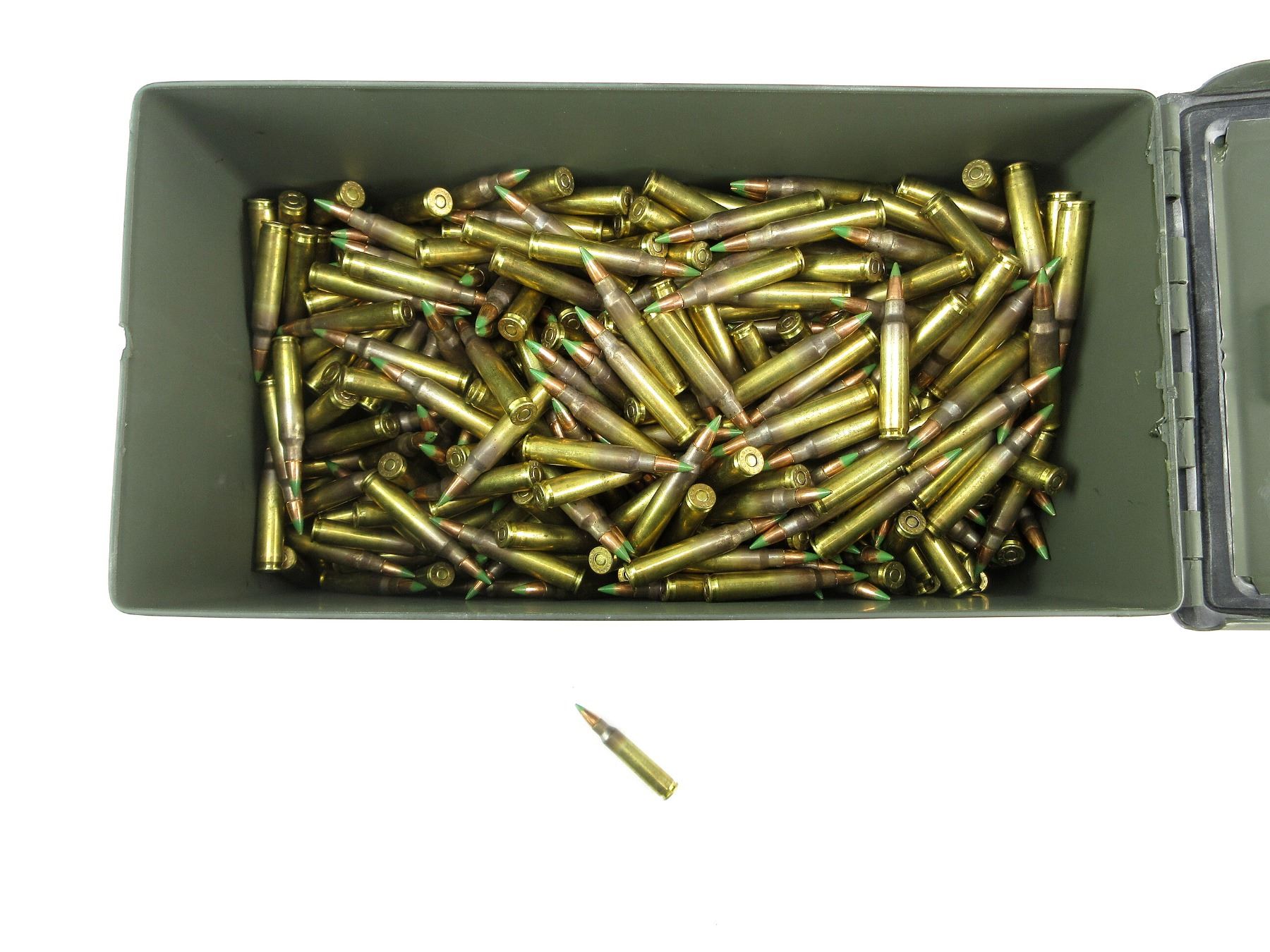 LOT INCLUDES; APPROX. (800) RNDS, BALL M855, ONE METAL AMMO CAN, APPROX. DIM 12"X6"X7".