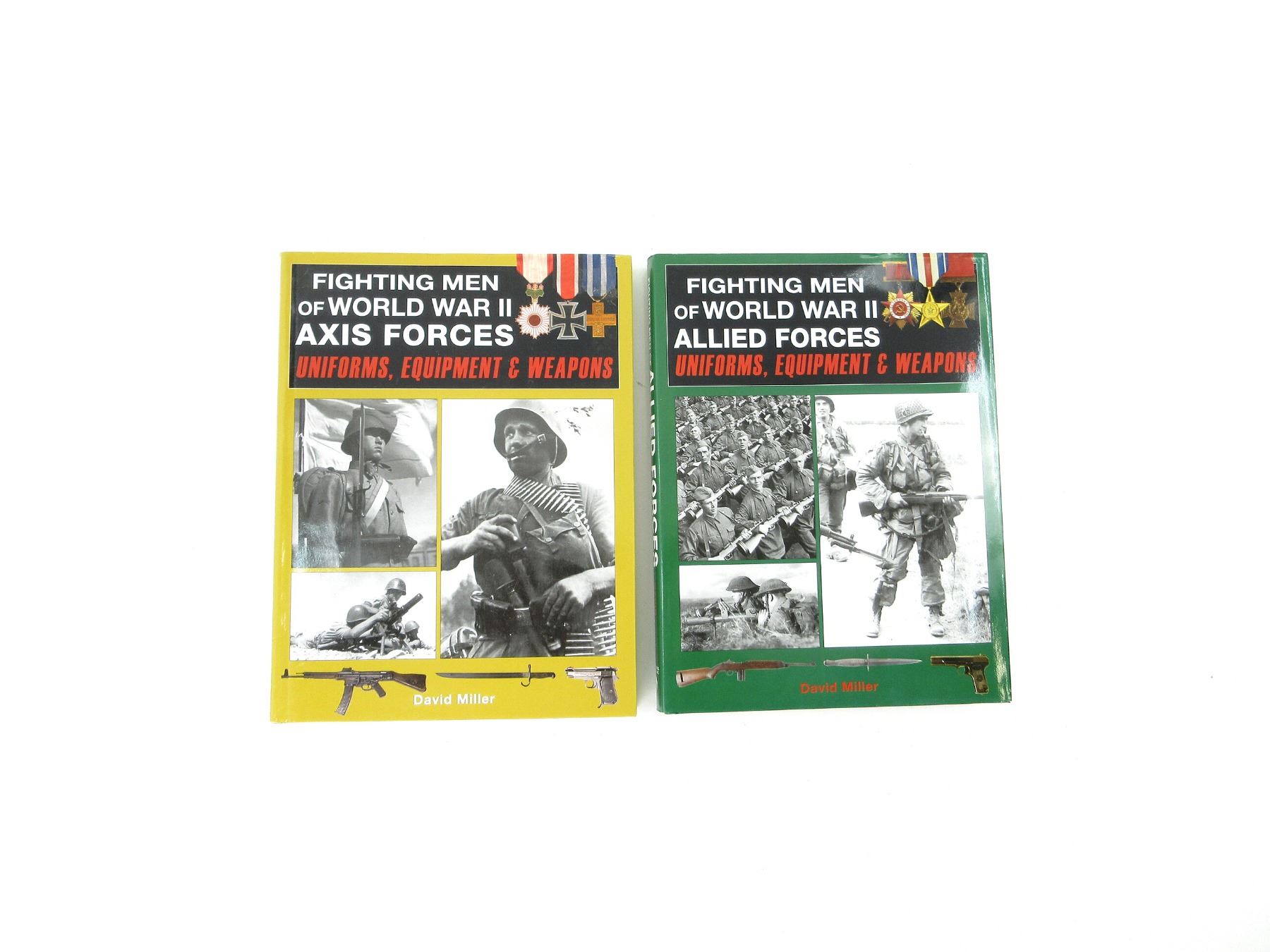 (1) "FIGHTING MEN OF WORLD WAR II AXIS FORCES UNIFORMS, EQUIPMENT & WEAPONS" BOOK BY DAVID MILLER, HARD COVER WITH DUST COVER, ISBN-13: 978-0-7858-2815-0 & (1) "FIGHTING MEN OF WORLD WAR II ALLIED FORCES, UNIFORMS, EQUIPMENT & WEAPONS" BOOK BY DAVID MILLER, HARD COVER WITH DUST COVER, ISBN-13: 978-0-7858-2814-3. SEE PHOTOS.