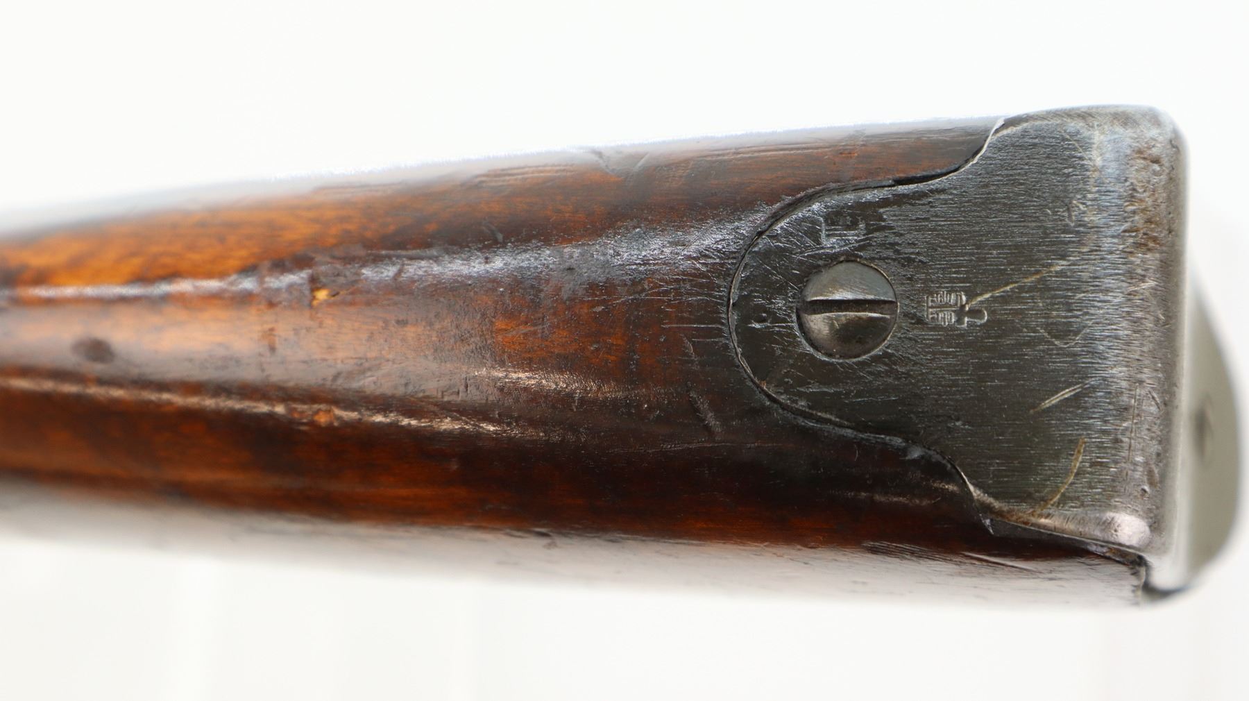 Main Description: Finnish rebuild dated 1938, bolt numbered to match. Blade front sight with ears and ramp, adjustable u notched rear sight with ears, blued finish, barrel marked S in a Gear (Sako) with SKY and SA in a box indicating Finnish Military Ownership, hex receiver, silver bolt with straight handle. Two piece full military wood stocks, finger grooved forearm cracked near sling slot, straight grip, smooth steel butt plate, stock cracked right side, stock has S marking and 38 on right side, sling slots, bayonet lug, cleaning rod.