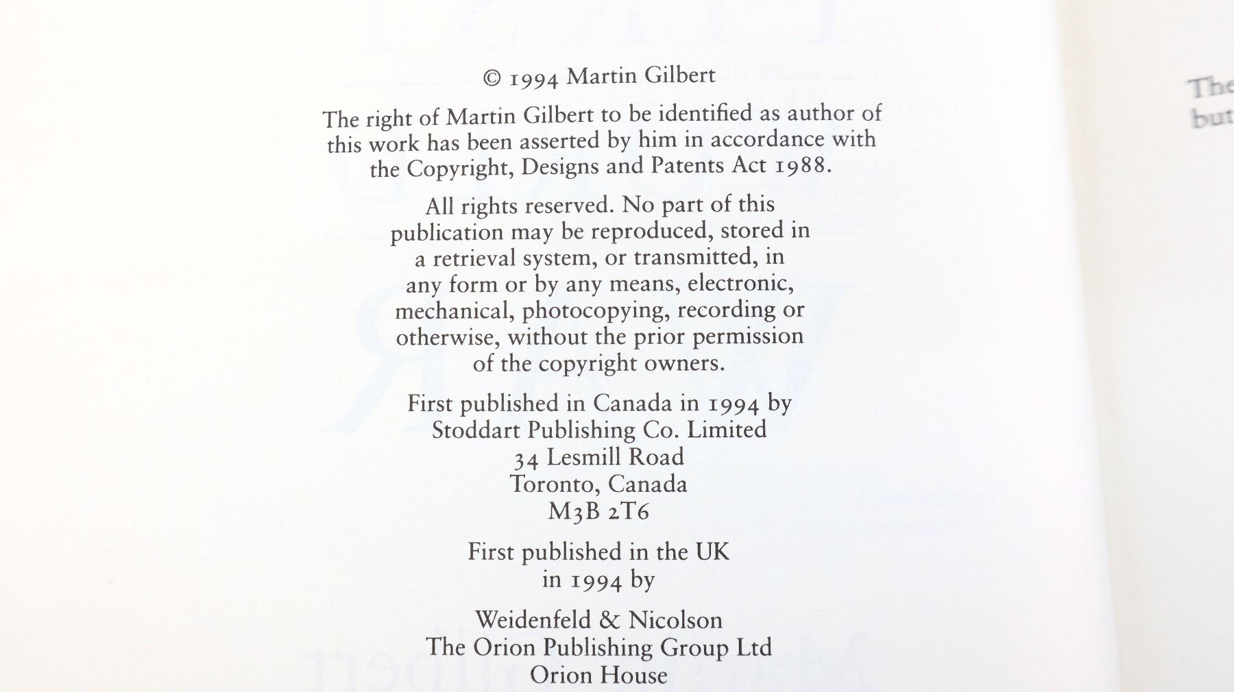 (1) BY MARTIN GILBERT, HARD COVER WITH DUST COVER, ISBN: 0-7737-2848-1. SEE PHOTOS.