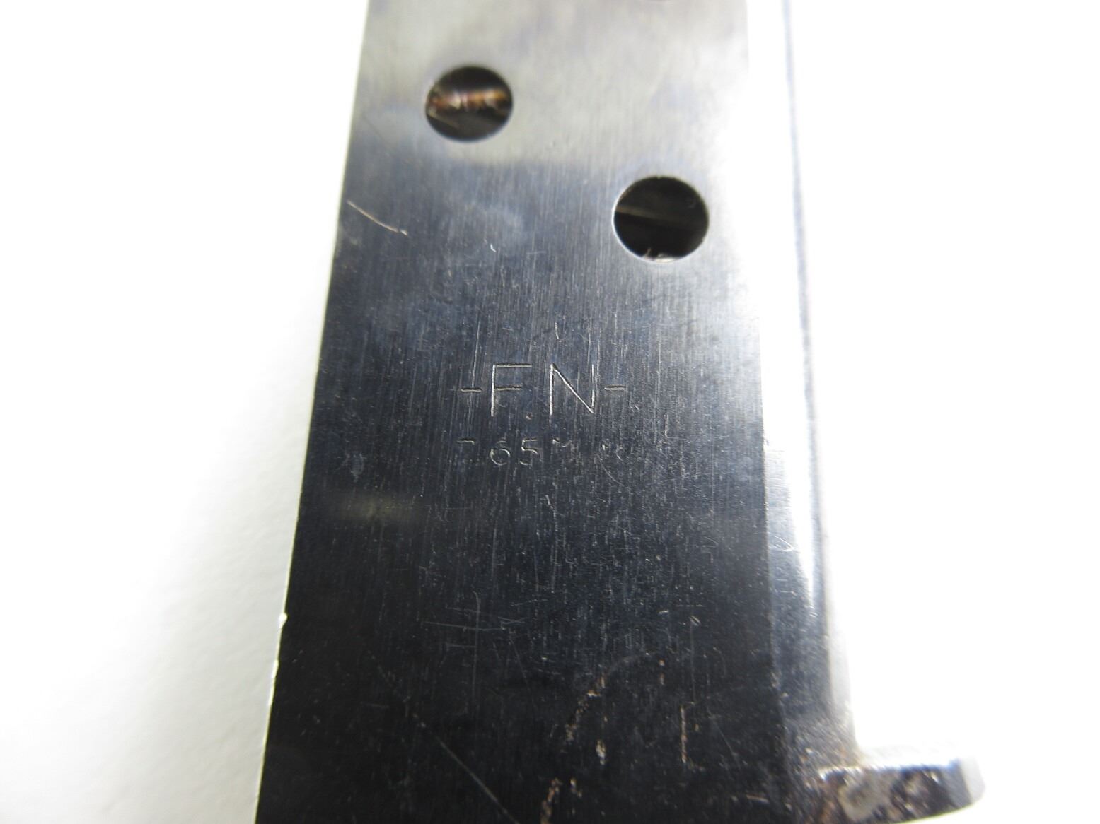 FN BROWNING 1910 7.65MM PISTOL MAGAZINE. (1) 7.65MM, 7 ROUND MAG, BLUED STEEL, MARKED: "FN, 7.65MM". SEE PHOTOS. PAL REQUIRED.