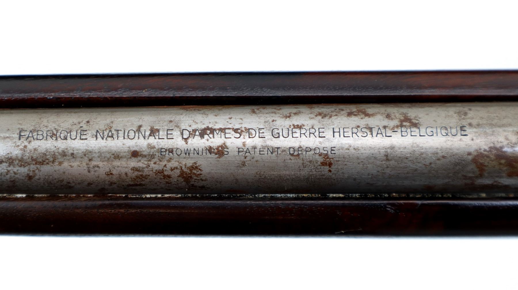 Main Description: No sights, barrel threaded at muzzle with cap, grooved receiver, checkered bolt knob. One piece wood stock, checkered forearm and pistol grip, browning logo, black polymer butt plate, swivel studs.