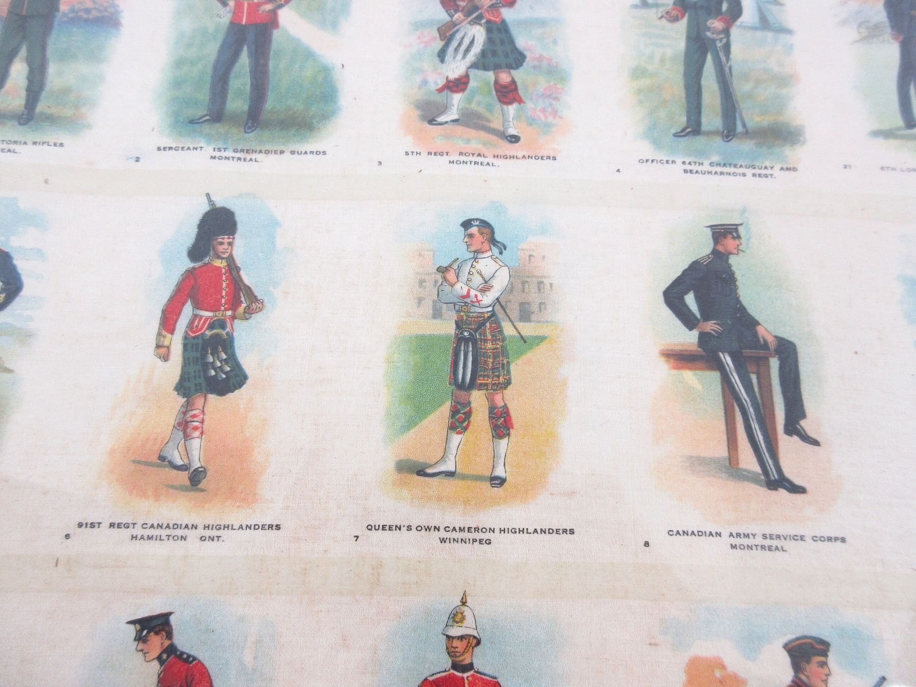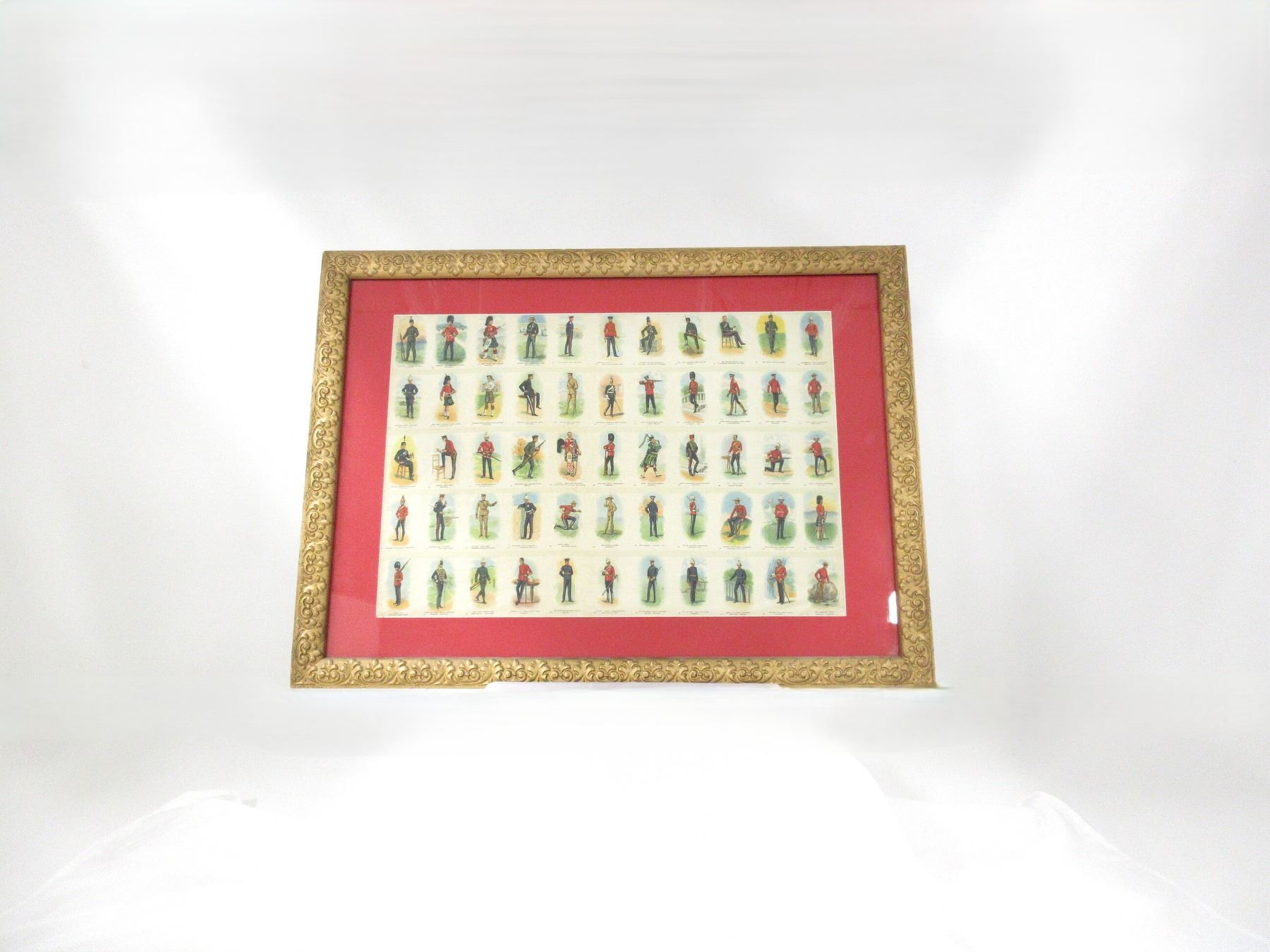 LOT INCLUDES APPROX. (55) SILK CIGARETTE CARDS, UN-CUT, DEPICTING SOLDIERS OF VARIOUS REGIMENTS / BRANCHES, NUMBERED 1 TO 55 WITH TITLE DESCRIBING EACH SOLDIER, UNDER-GLASS, FRAME APPROX. 30 5/8" X 22.5". SEE PHOTOS. *NO GUARANTEE ON GLASS FOR SHIPPING*