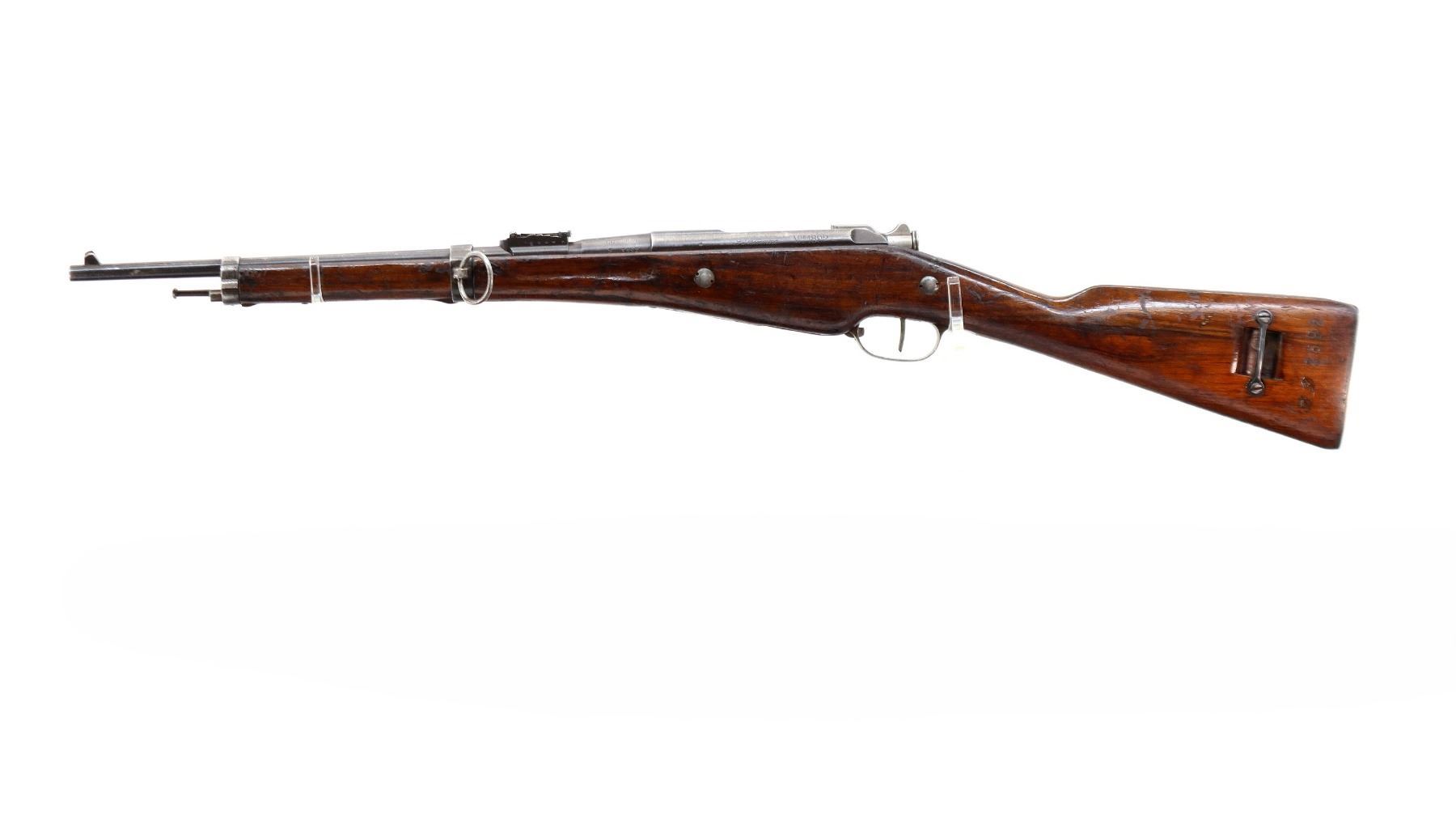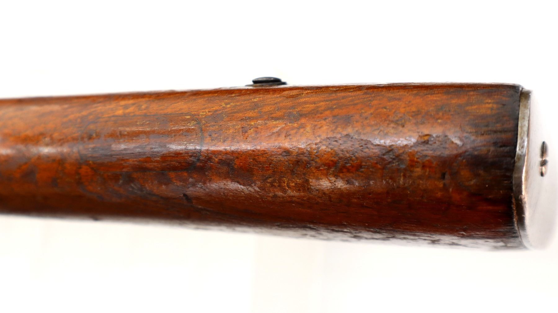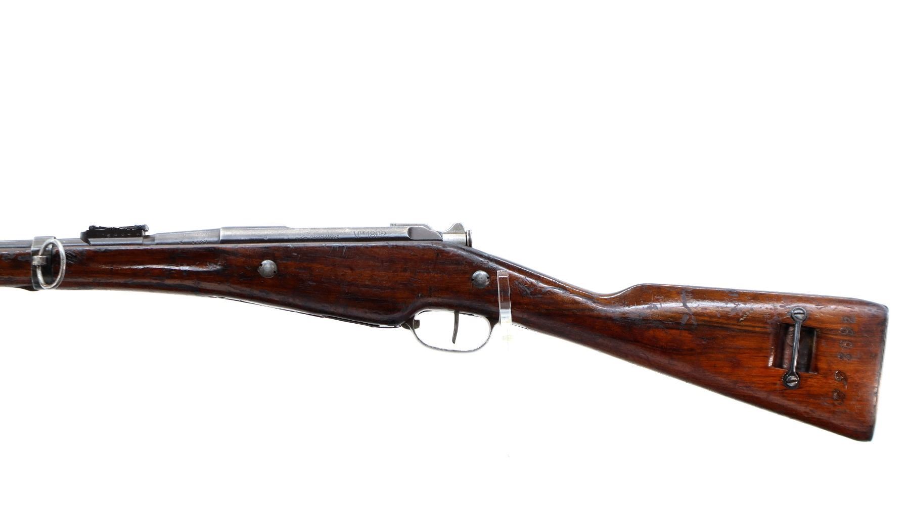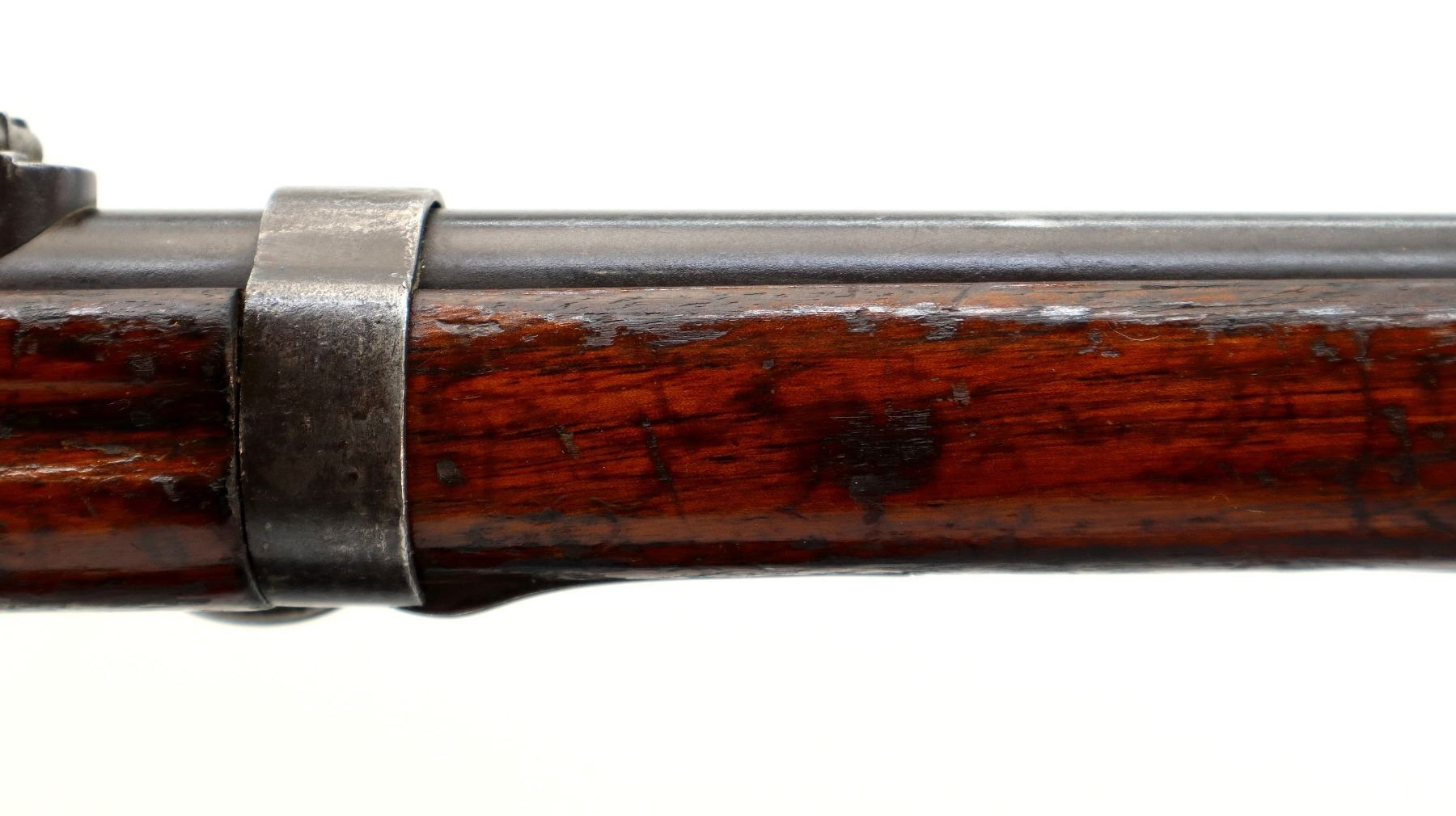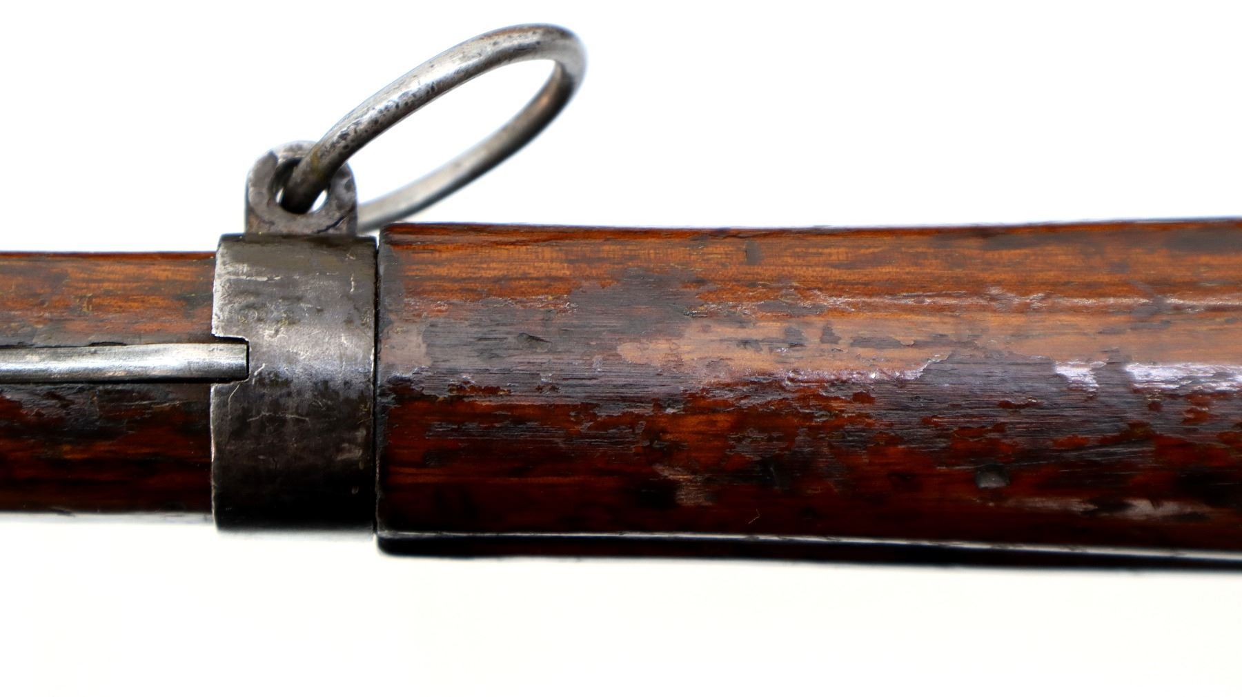 Main Description: Manufactured by St Etienne 1892, visible serial numbers match. Blade front sight with ramp, adjustable u notched rear sight, silver bolt with turned down handle and flat bottomed knob, uses three round stripper clip. One piece full military wood stock, finger grooved forearm, straight grip, smooth steel butt plate, sling swivels, stock has small arsenal repairs, stacking hook, bayonet lug.