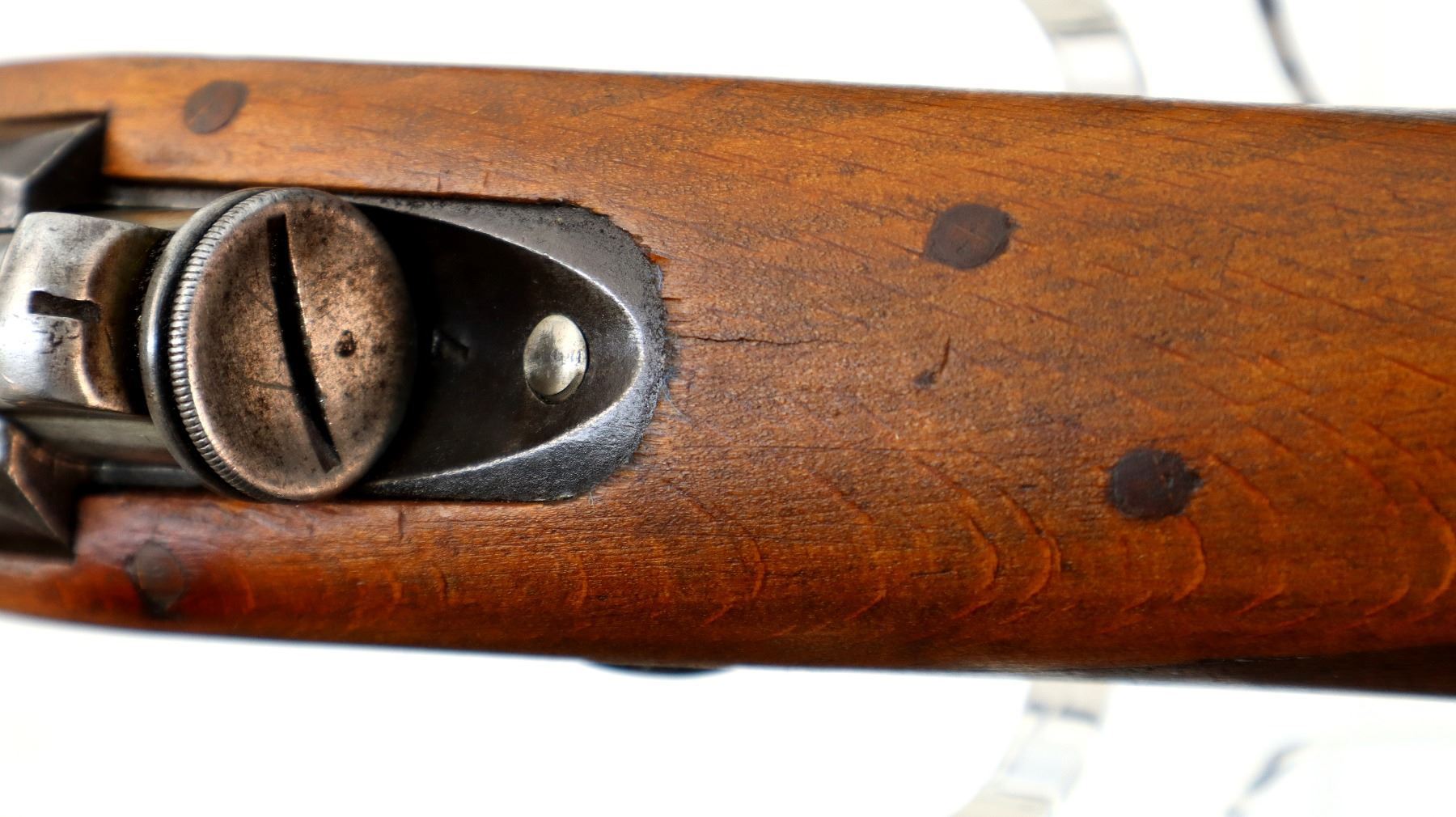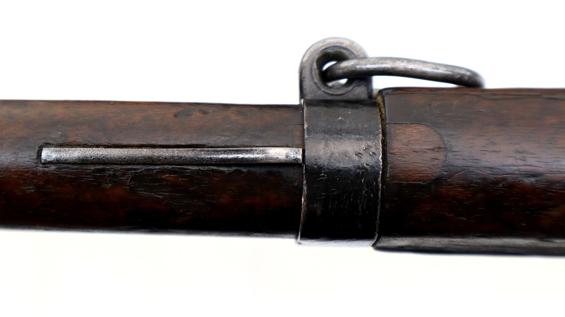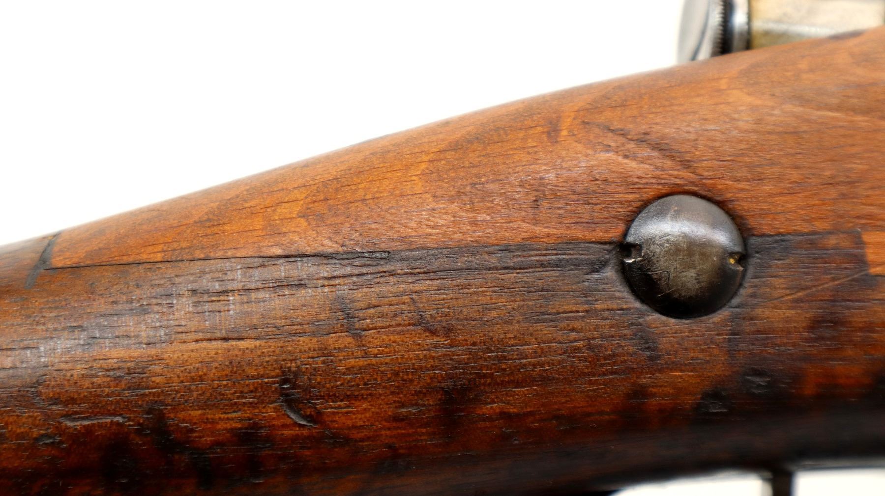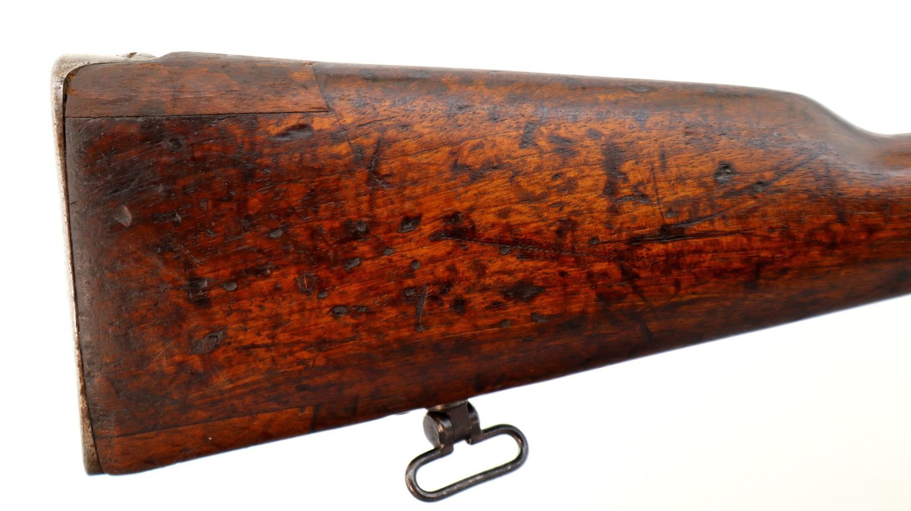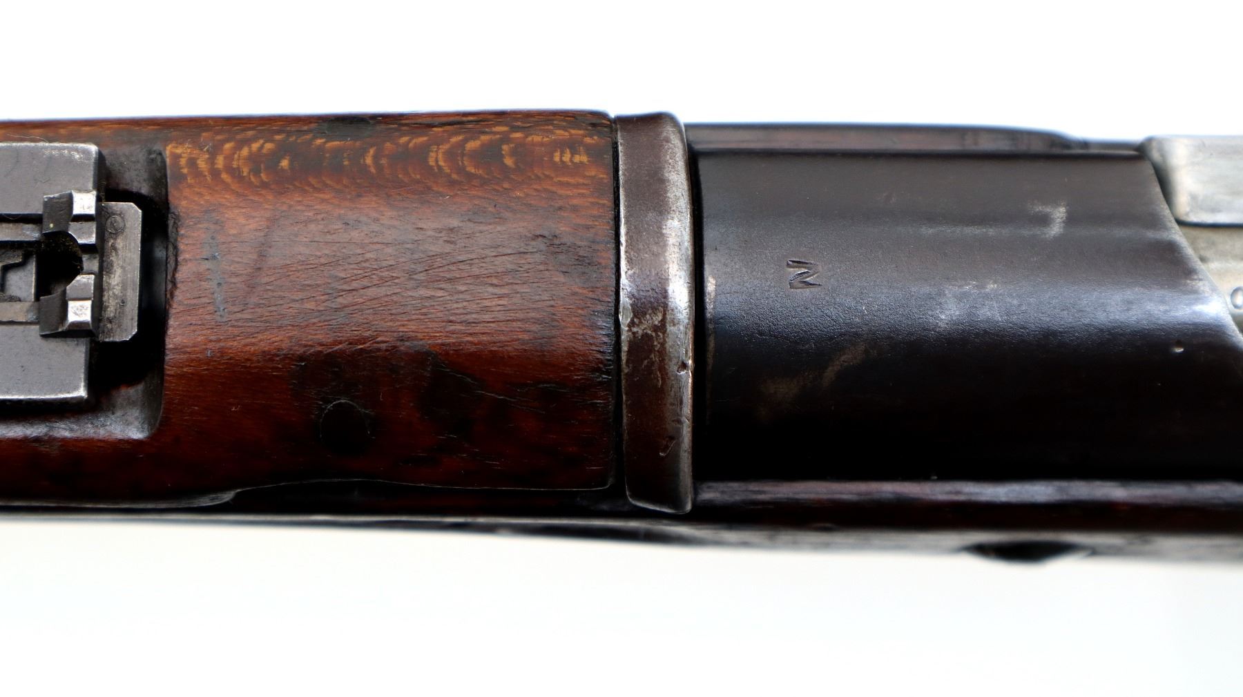 Main Description: Manufactured by St Etienne, bolt mismatched. Block front sight with groove and ramp, adjustable u notched rear sight, blued finish, five round stripper clip, silver bolt with straight handle. Two piece full military wood stock, finger grooved forearm, straight grip, smooth steel butt plate, stock has various arsenal repairs, sling swivels, stacking hook, bayonet lug.