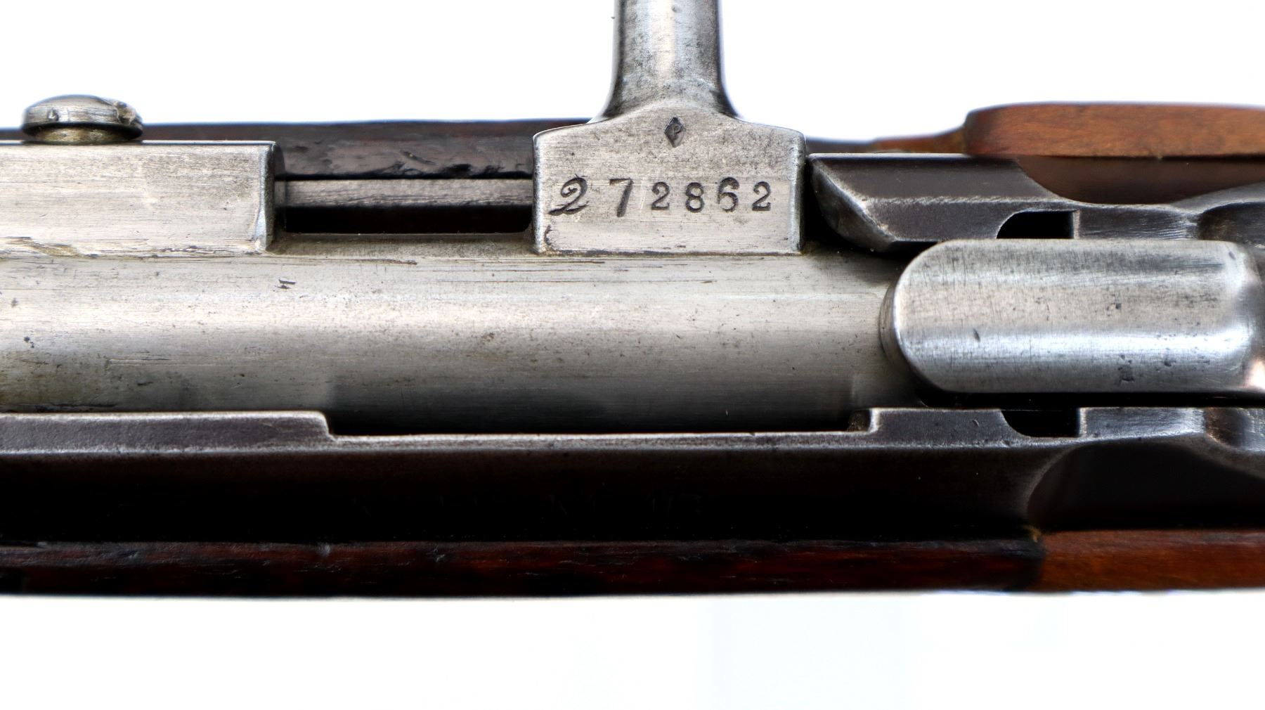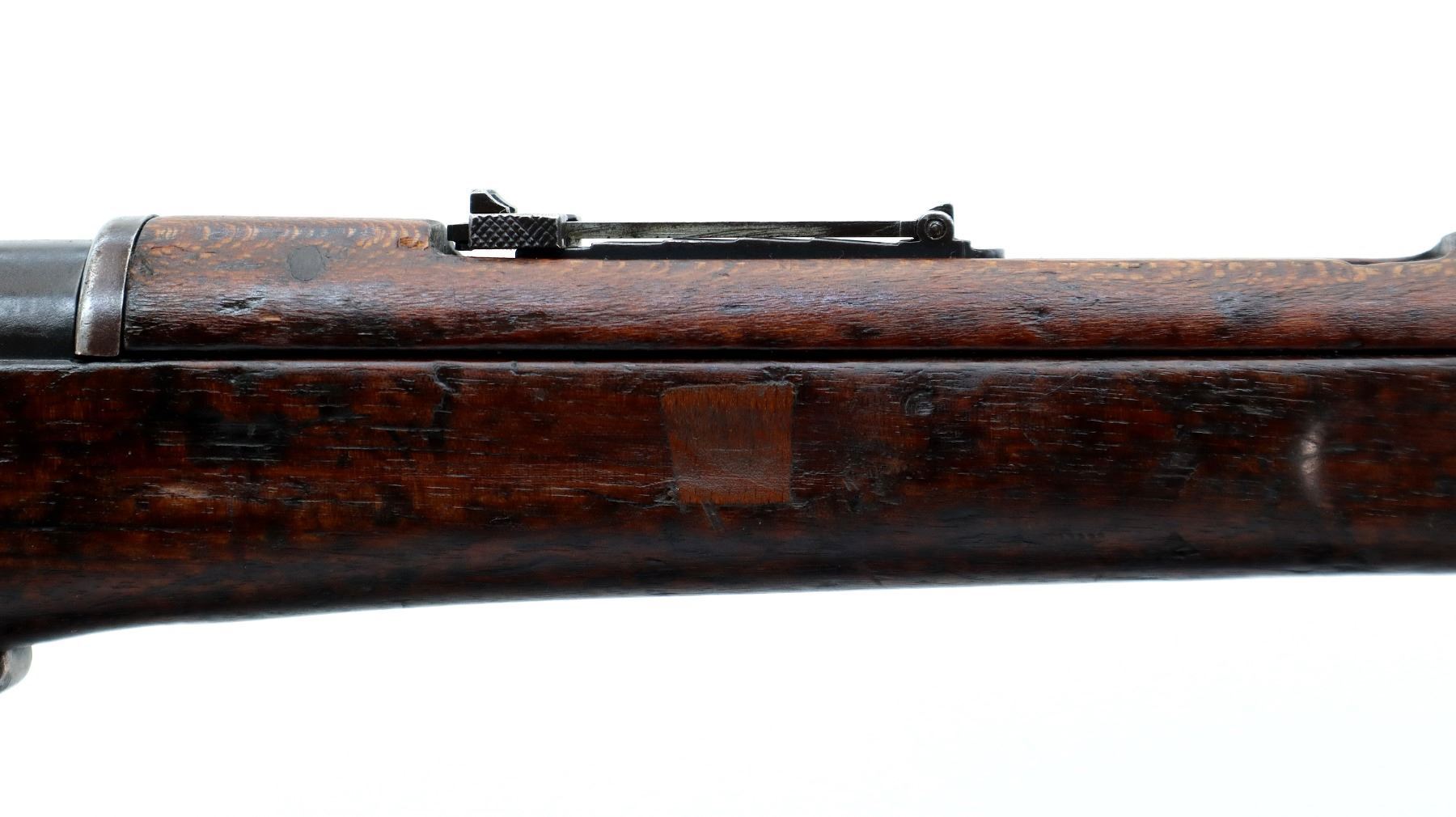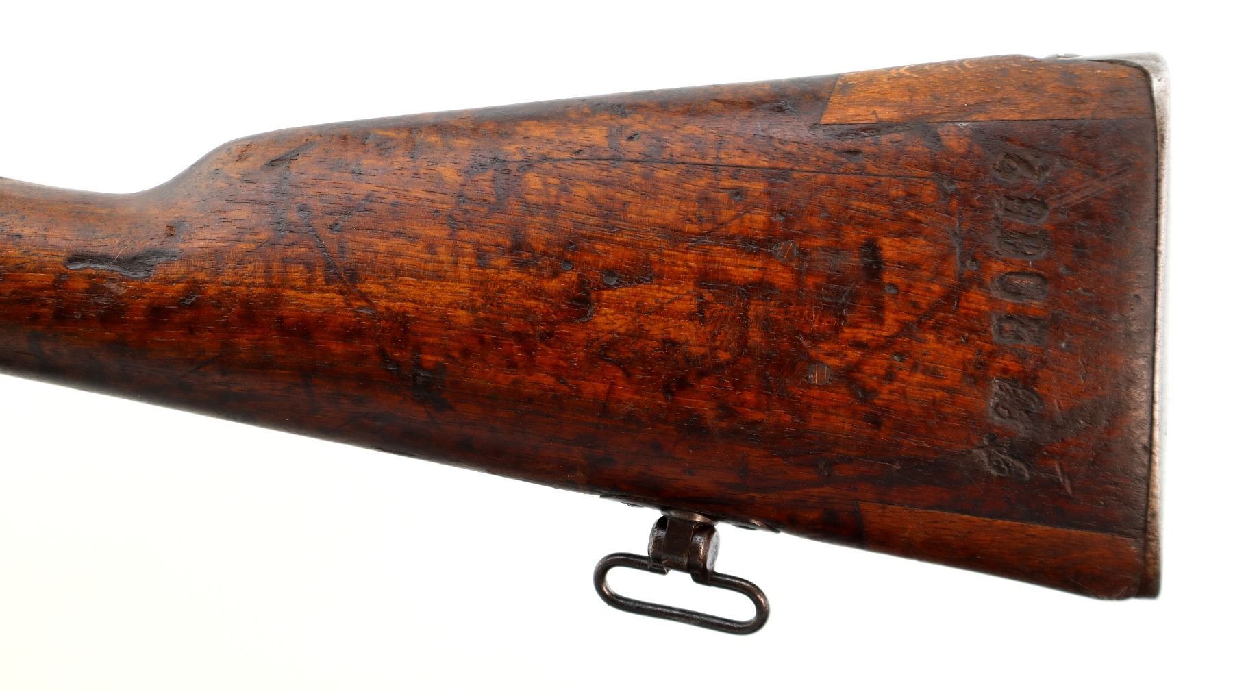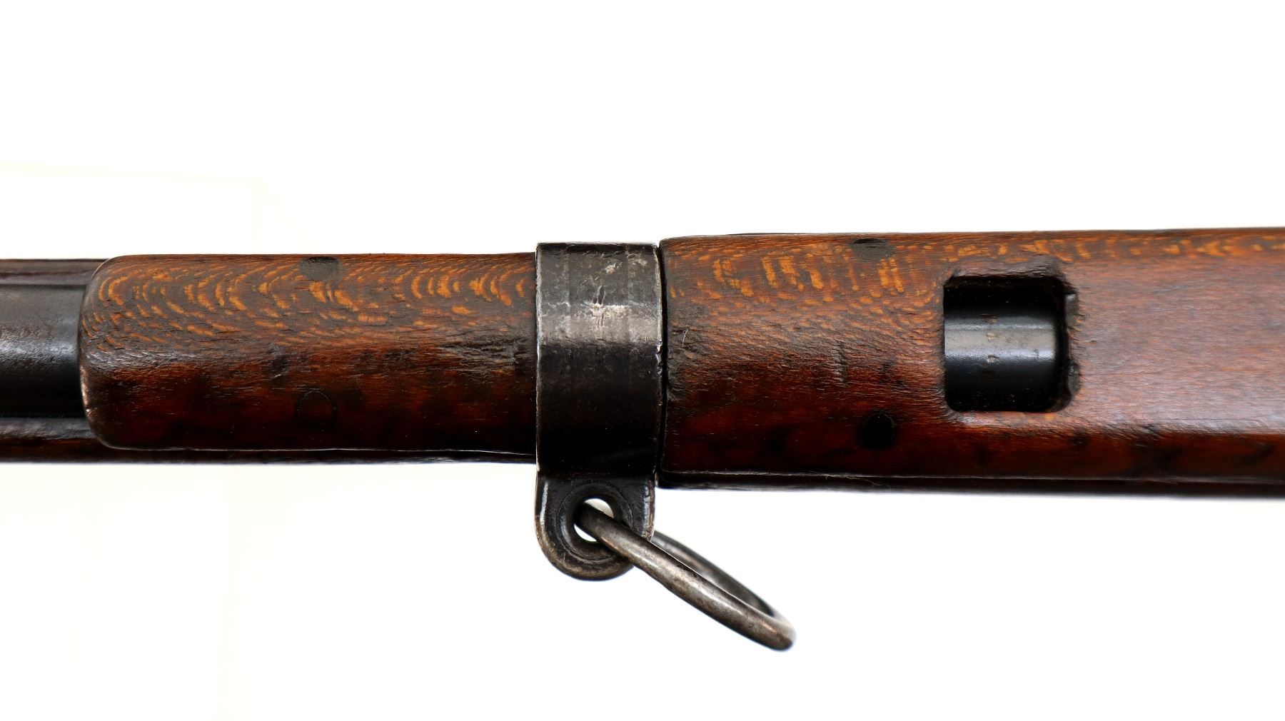 Main Description: Manufactured by St Etienne, bolt mismatched. Block front sight with groove and ramp, adjustable u notched rear sight, blued finish, five round stripper clip, silver bolt with straight handle. Two piece full military wood stock, finger grooved forearm, straight grip, smooth steel butt plate, stock has various arsenal repairs, sling swivels, stacking hook, bayonet lug.
