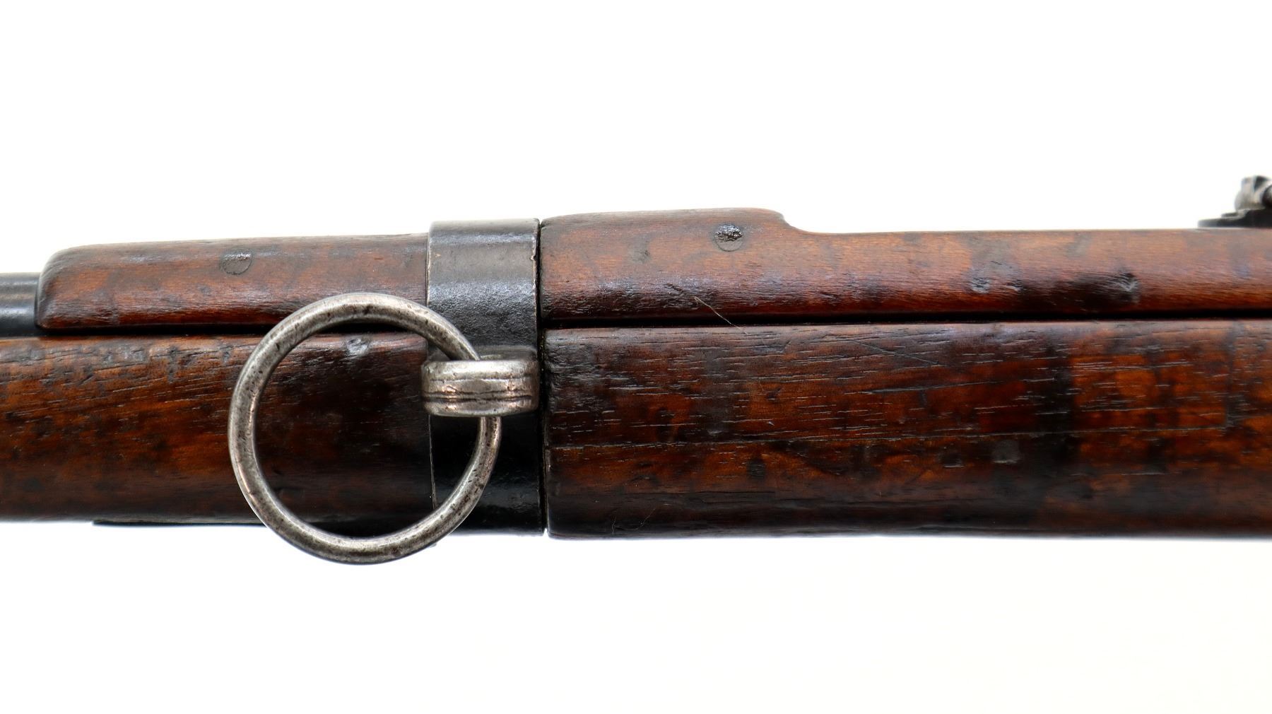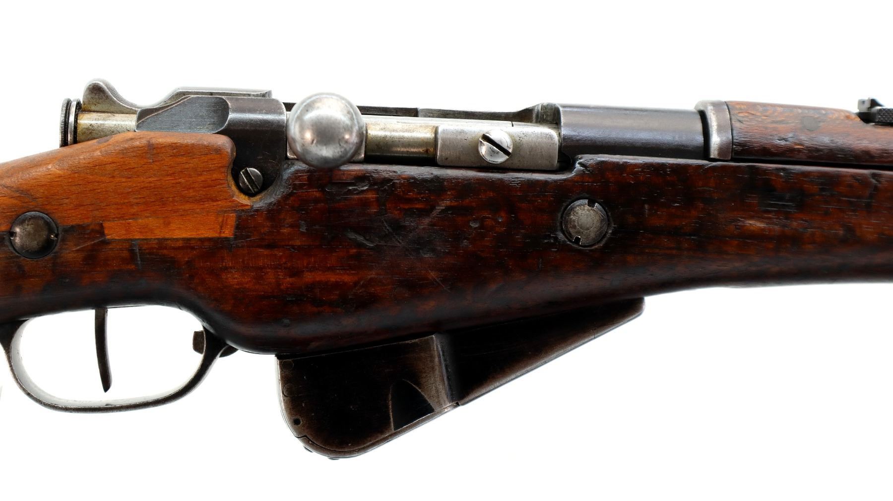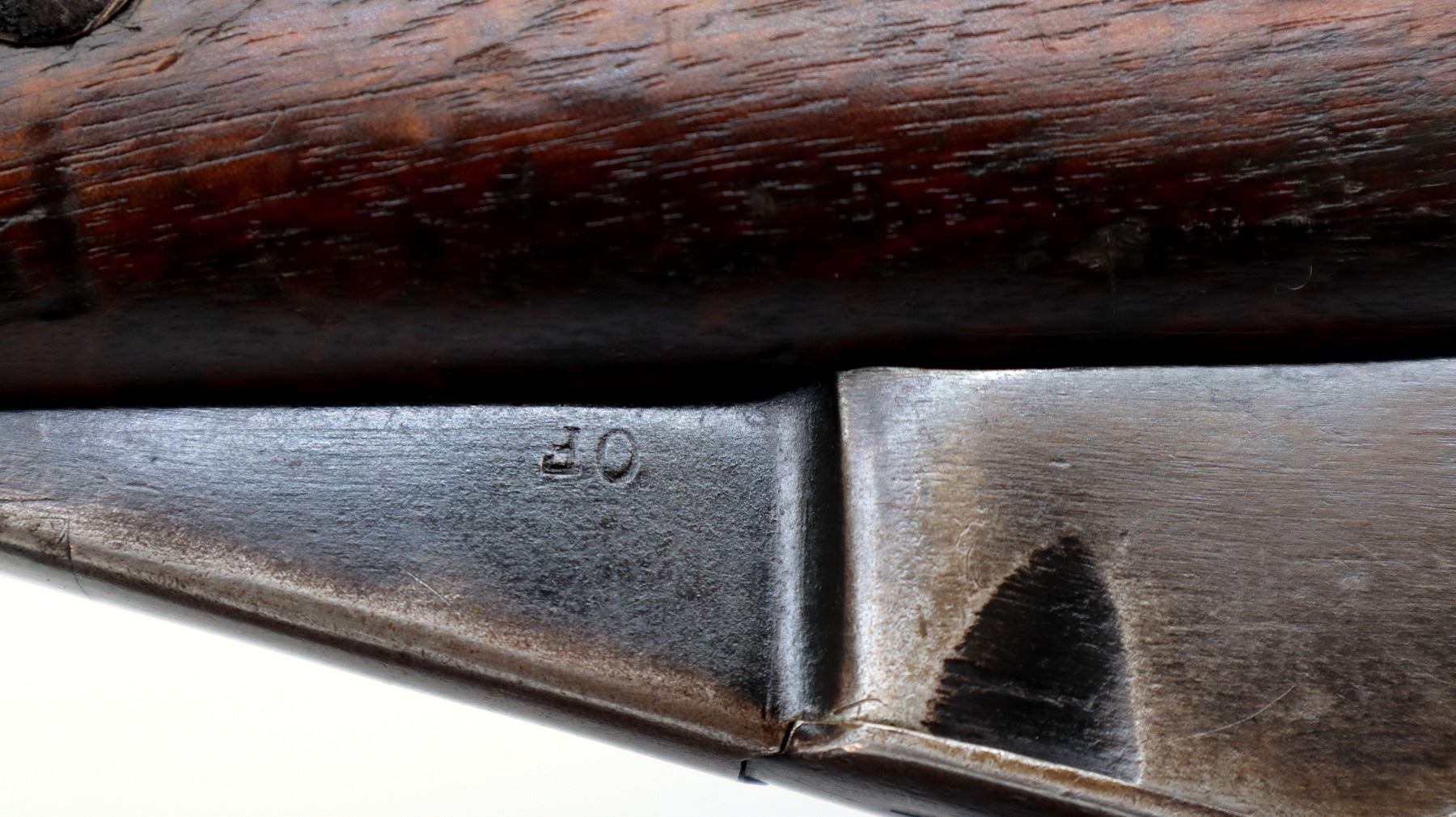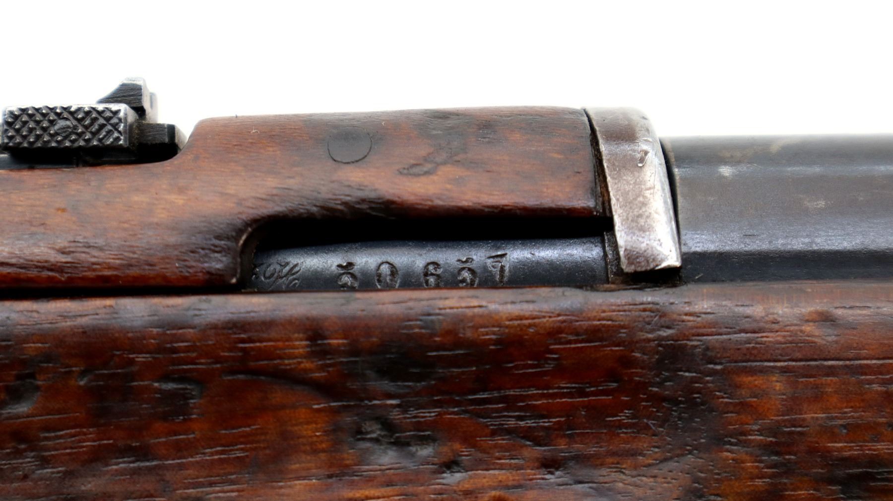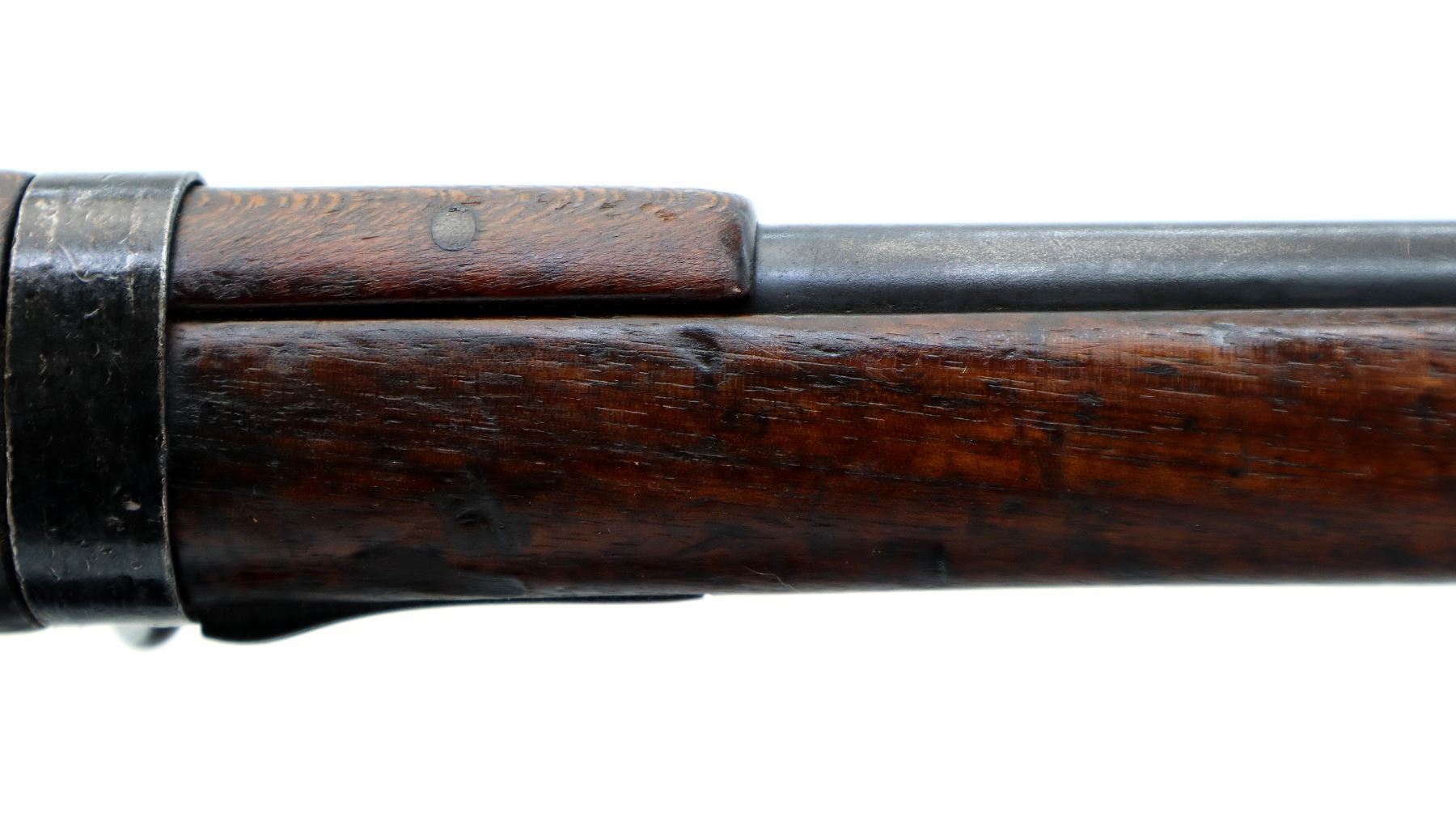 Main Description: Manufactured by St Etienne, bolt mismatched. Block front sight with groove and ramp, adjustable u notched rear sight, blued finish, five round stripper clip, silver bolt with straight handle. Two piece full military wood stock, finger grooved forearm, straight grip, smooth steel butt plate, stock has various arsenal repairs, sling swivels, stacking hook, bayonet lug.
