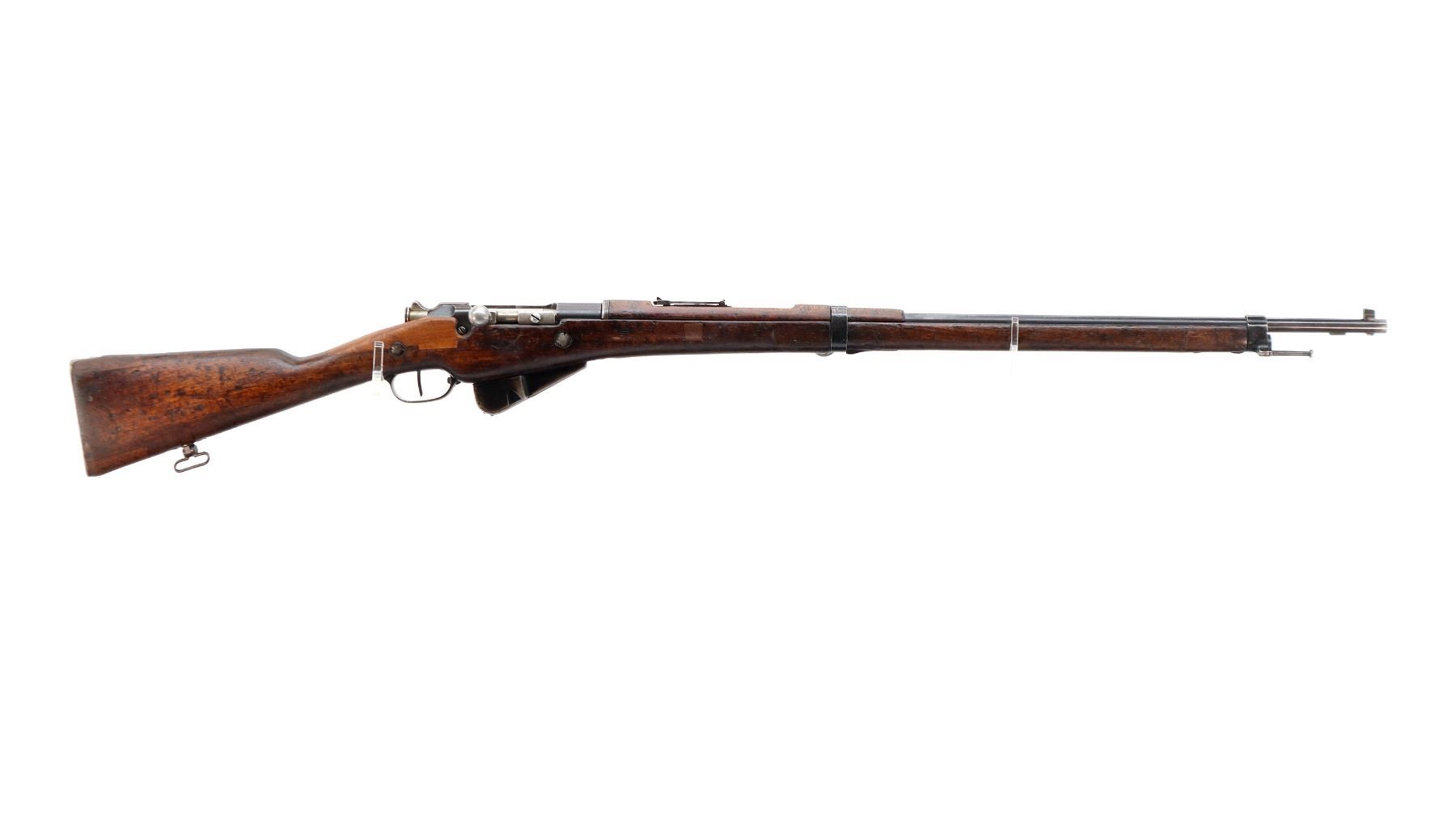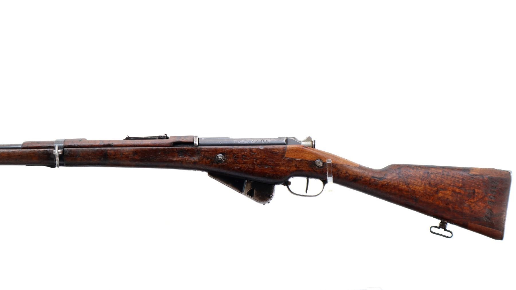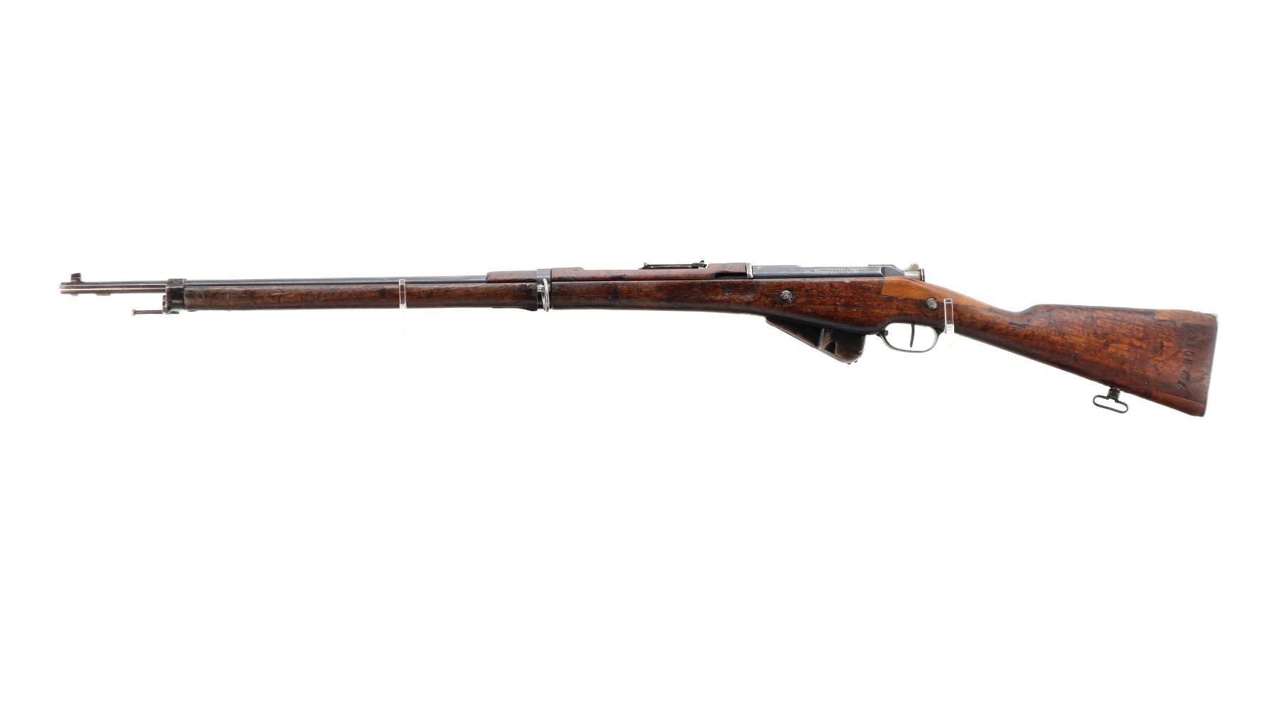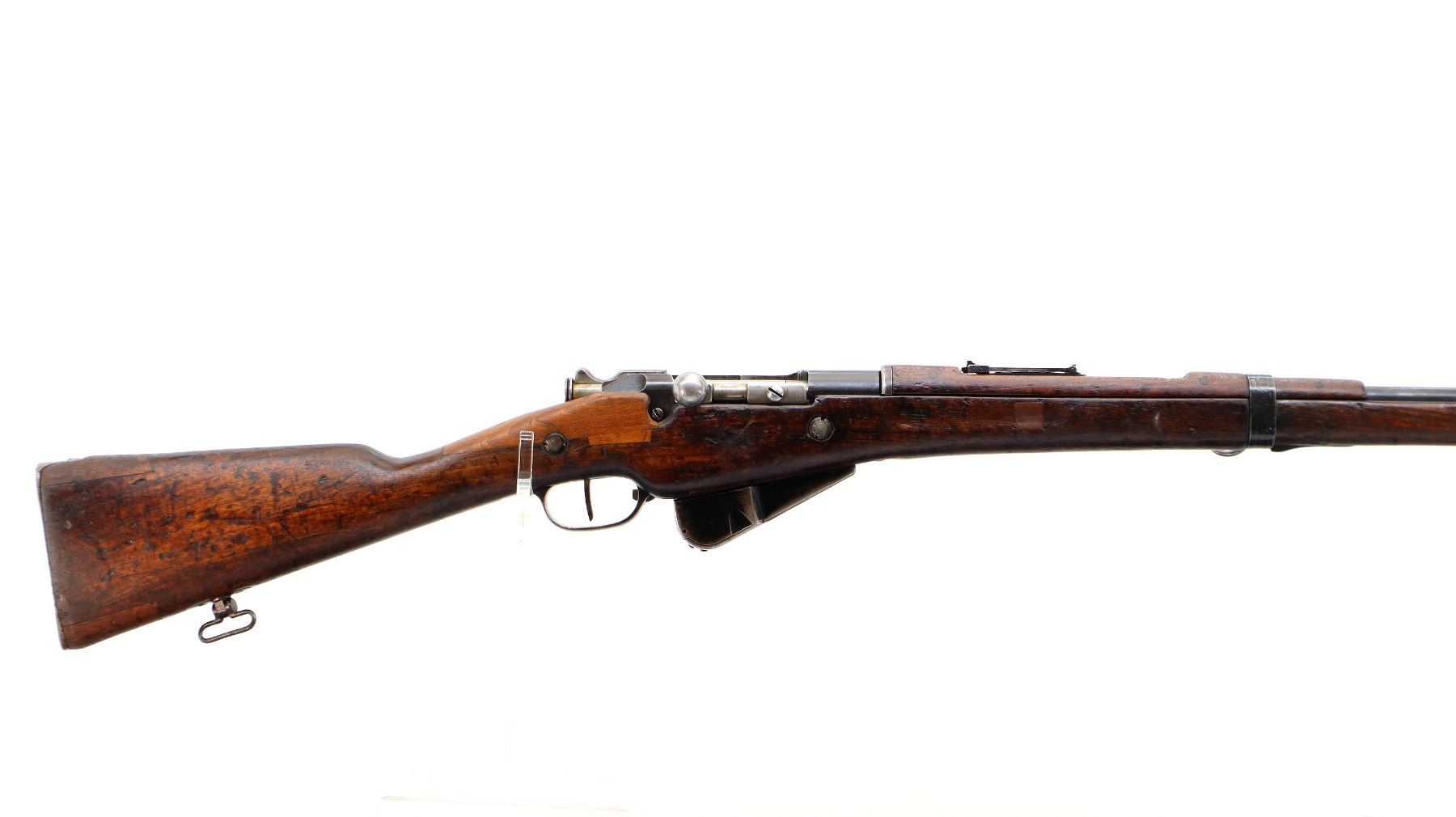 Main Description: Manufactured by St Etienne, bolt mismatched. Block front sight with groove and ramp, adjustable u notched rear sight, blued finish, five round stripper clip, silver bolt with straight handle. Two piece full military wood stock, finger grooved forearm, straight grip, smooth steel butt plate, stock has various arsenal repairs, sling swivels, stacking hook, bayonet lug.