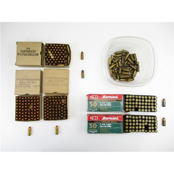 ASSORTED 9MM LUGER AMMO, 335 RNDS, SOME MFG'S BY BARNAUL, LOT INCLUDES MILITARY RNDS. THERE ARE NEW SHIPPING RESTRICTIONS, PLEASE MAKE SURE YOU ...