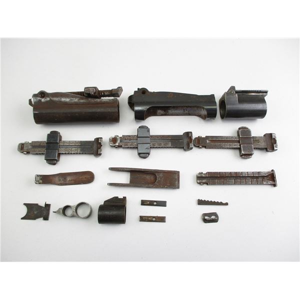 ASSORTED MAUSER PARTS . INCLUDES: VARIOUS REAR SIGHT PARTS, WITH ELEVATION ADJUSTMENTS, RUST & PITTING. ETC. MAY REQUIRE FITTING.
