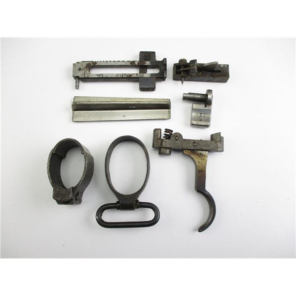 ASSORTED MAUSER RIFLE PARTS . INCLUDES: BARREL BAND WITH SWIVEL, REAR SIGHT, BOLT STOP ASSEMBLY, FRONT BARREL BAND, TRIGGER ASSEMBLY, ETC. NOTE: LOT M