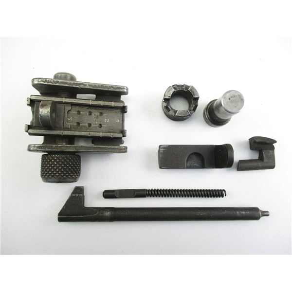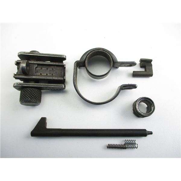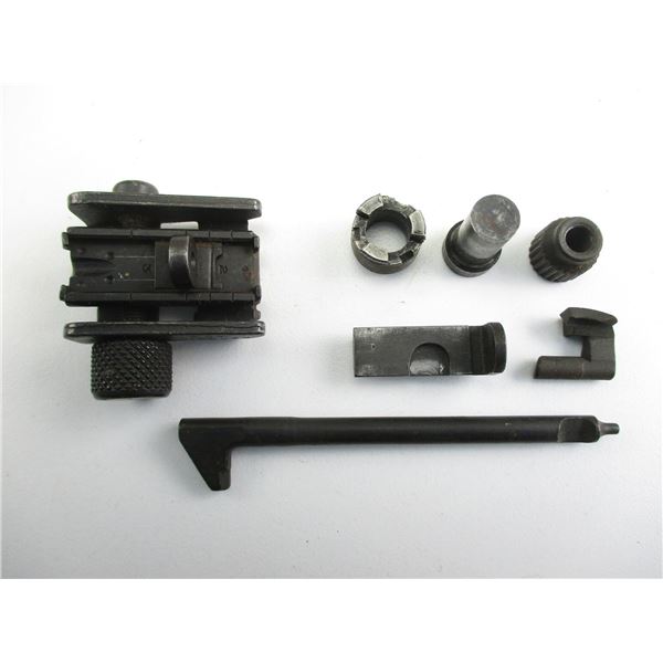 M-1 CARBINE PARTS . INCLUDES: REAR SIGHT, (APPEARS COMPLETE) WITH ELEVATION & WINDAGE ADJUSTMENTS, EXTRACTOR, FIRING PIN, MAG CATCH, GAS PISTON ...