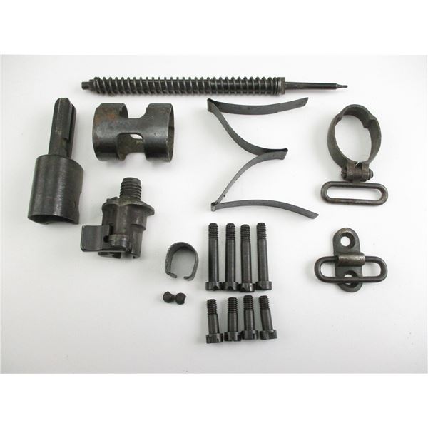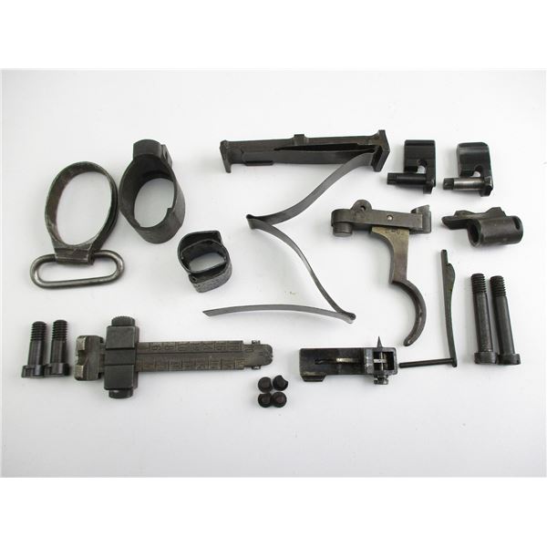 ASSORTED SWEDISH MAUSER PARTS . INCLUDES: BARREL BAND WITH SWIVEL, FRONT BARREL BAND, TRIGGER MECH, REAR SIGHT, FOLLOWER, ETC. NOTE: MAY CONTAIN NON S