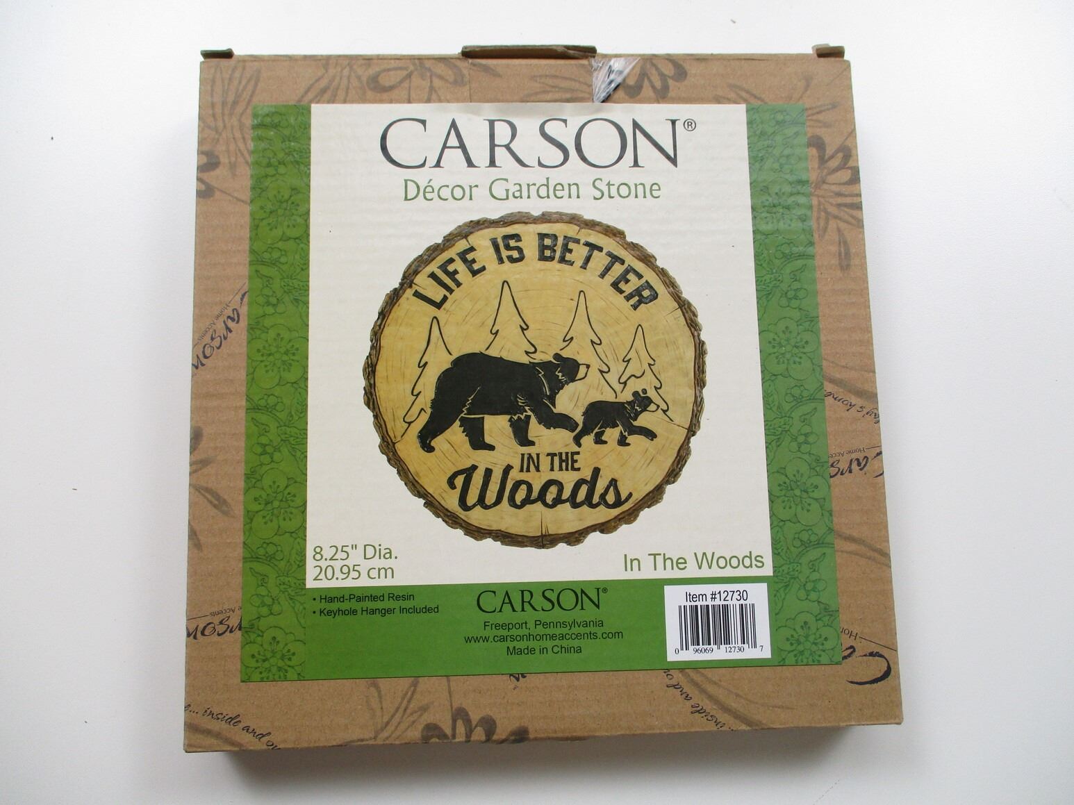GARDEN DECOR STONE "LIFE IS BETTER IN THE WOODS" , LIVEN UP YOUR GARDEN PATH WITH THIS 825" DECOR STONE INCLUDES "LIFE IS BETTER IN THE WOODS AND A BABY & MAMA BEAR" , RETAIL VALUE $25, GENEROUSLY DONATED BY IDA PHAMACY
