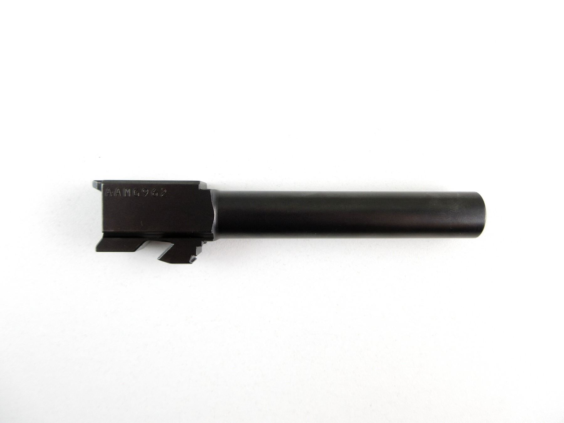 (1) GLOCK 17 FACTORY BARREL, BLACKENED STEEL CONSTRUCTION, 9X19MM, BORE IS VERY GOOD / SHINEY, MARKED: "GLOCK", "9X19", "AAMG962", ETC., OAL APPROX. 4.5". MAY REQUIRE FITTING. SEE PHOTOS. PAL REQUIRED.