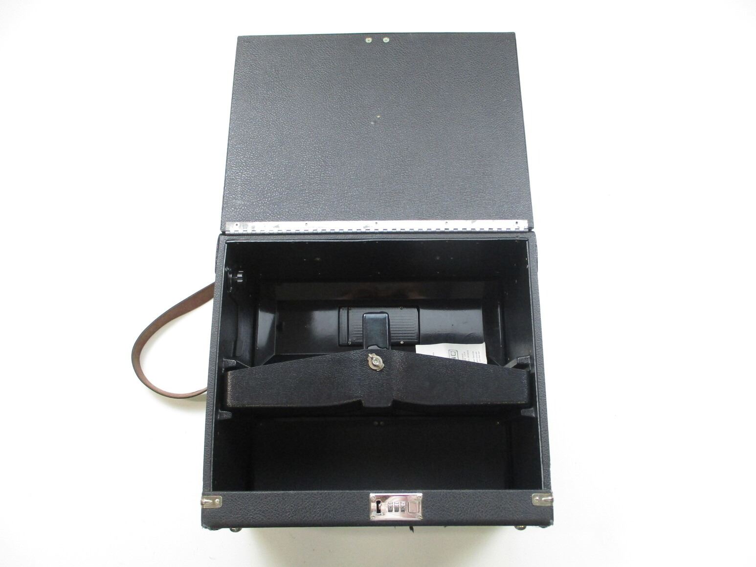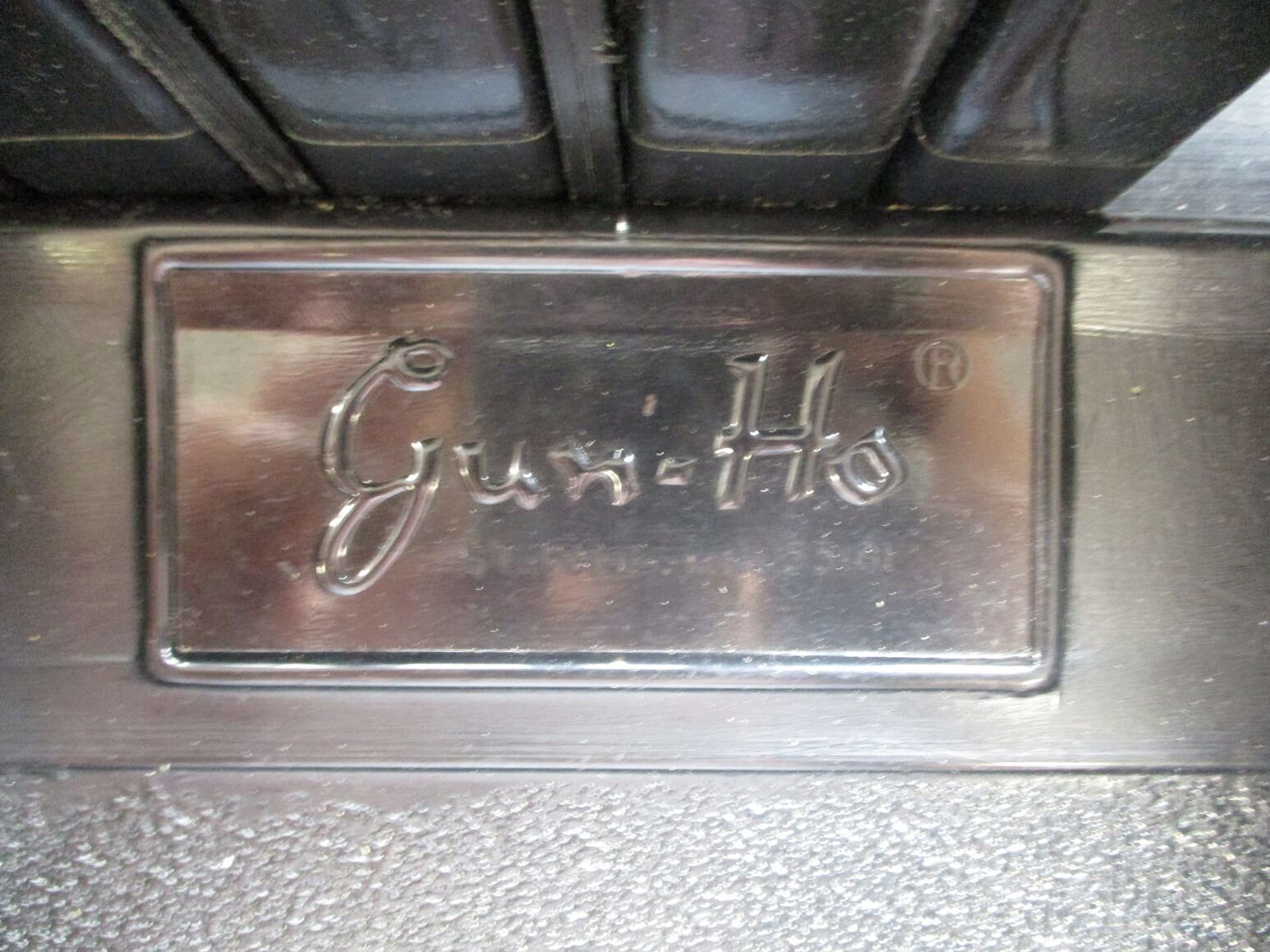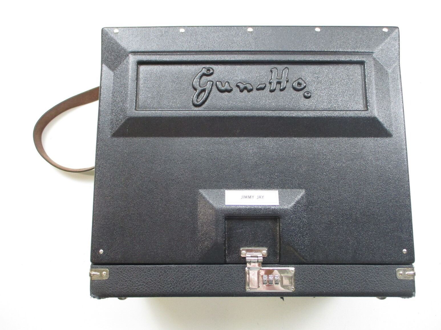 GUN. HO DELUXE STYLE HANDGUN CASE , WITH ADJUSTABLE LOCK-GRIP TRAY, HOLDS UP TO 4 HANDGUNS, WITH BOTTOM STORAGE SPACE, & LOCKABLE ARM TO HOLD DOOR OPEN, APPROX. 18 X 9 X 16" COMBO LOCK, COMBINATION WRITTEN ON PAPER IN LOT.