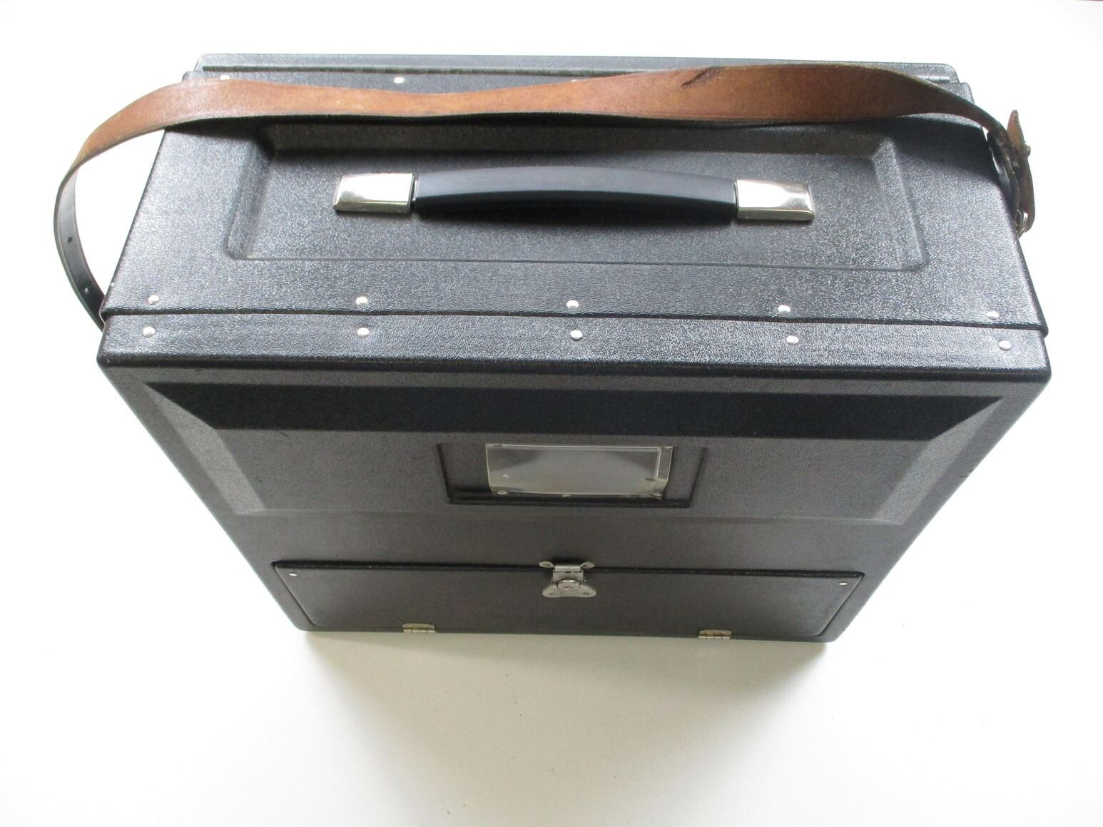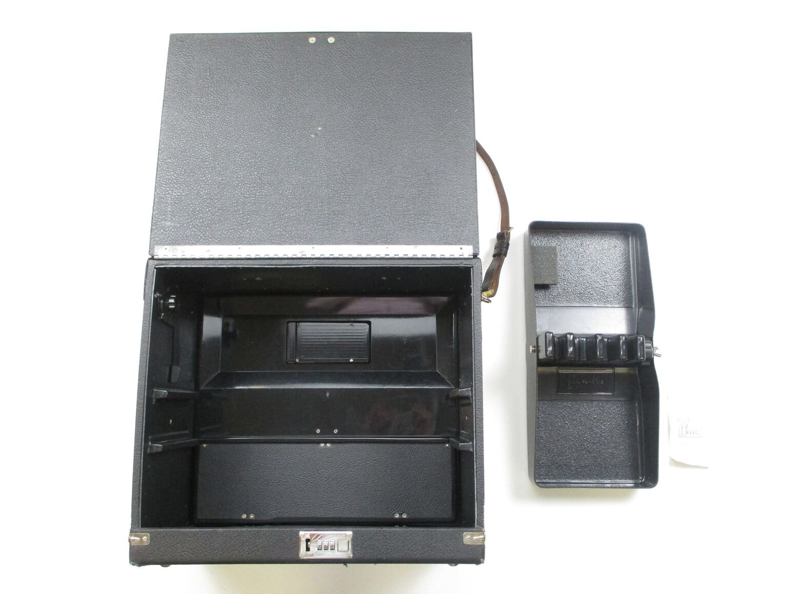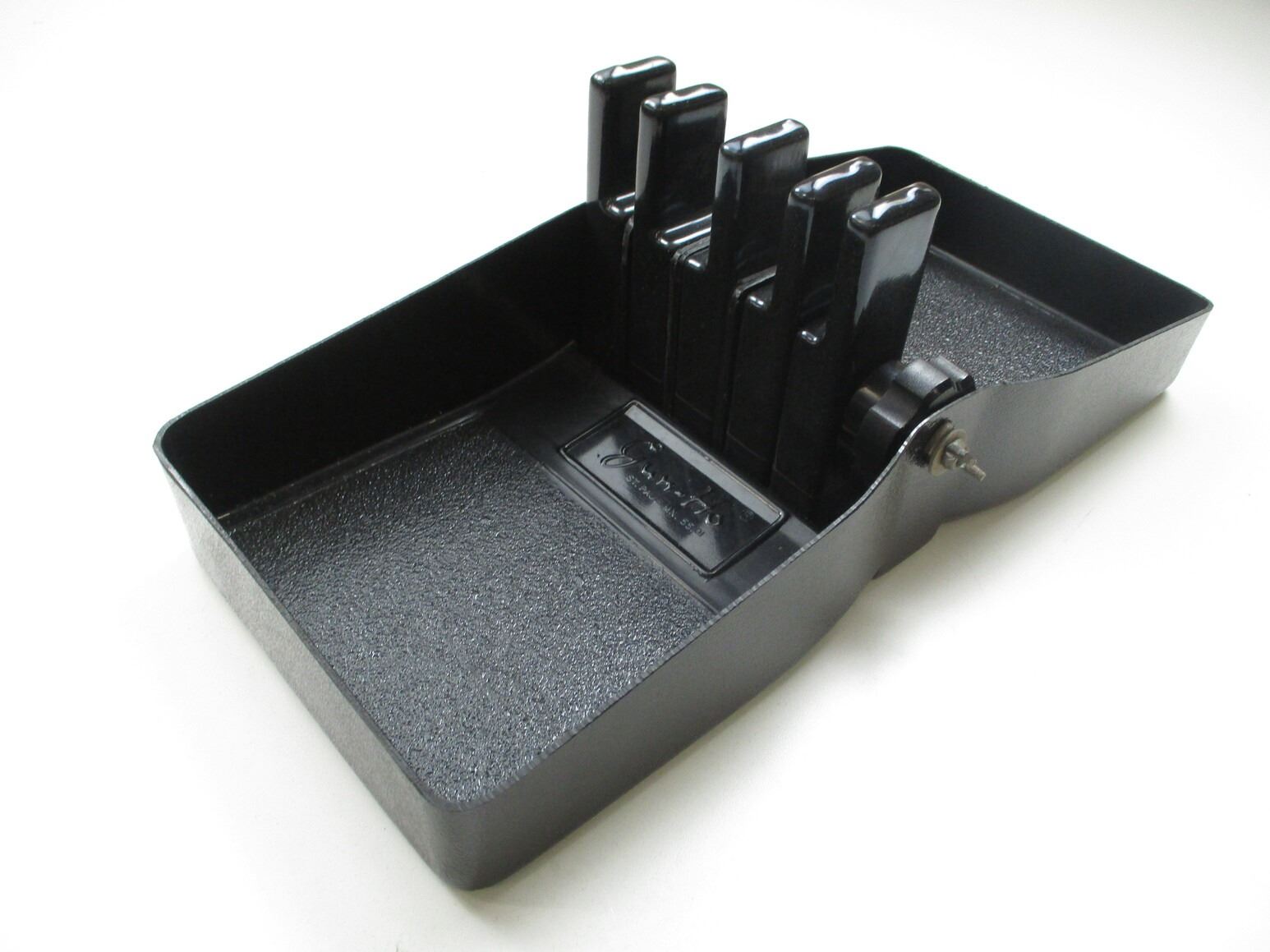 GUN. HO DELUXE STYLE HANDGUN CASE , WITH ADJUSTABLE LOCK-GRIP TRAY, HOLDS UP TO 4 HANDGUNS, WITH BOTTOM STORAGE SPACE, & LOCKABLE ARM TO HOLD DOOR OPEN, APPROX. 18 X 9 X 16" COMBO LOCK, COMBINATION WRITTEN ON PAPER IN LOT.