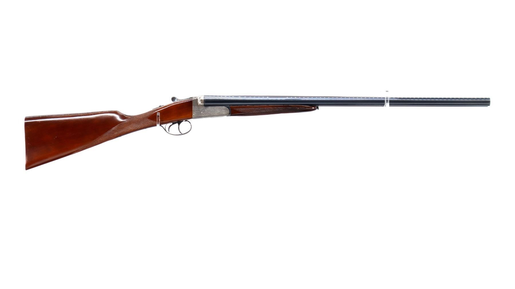 Main Description: Brass bead, polish blued barrels with smooth rib, engraved silver receiver, automatic safety, ejectors, double triggers. Two piece wood stocks, checkered forearm and straight grip, smooth butt, 14.75" LOP