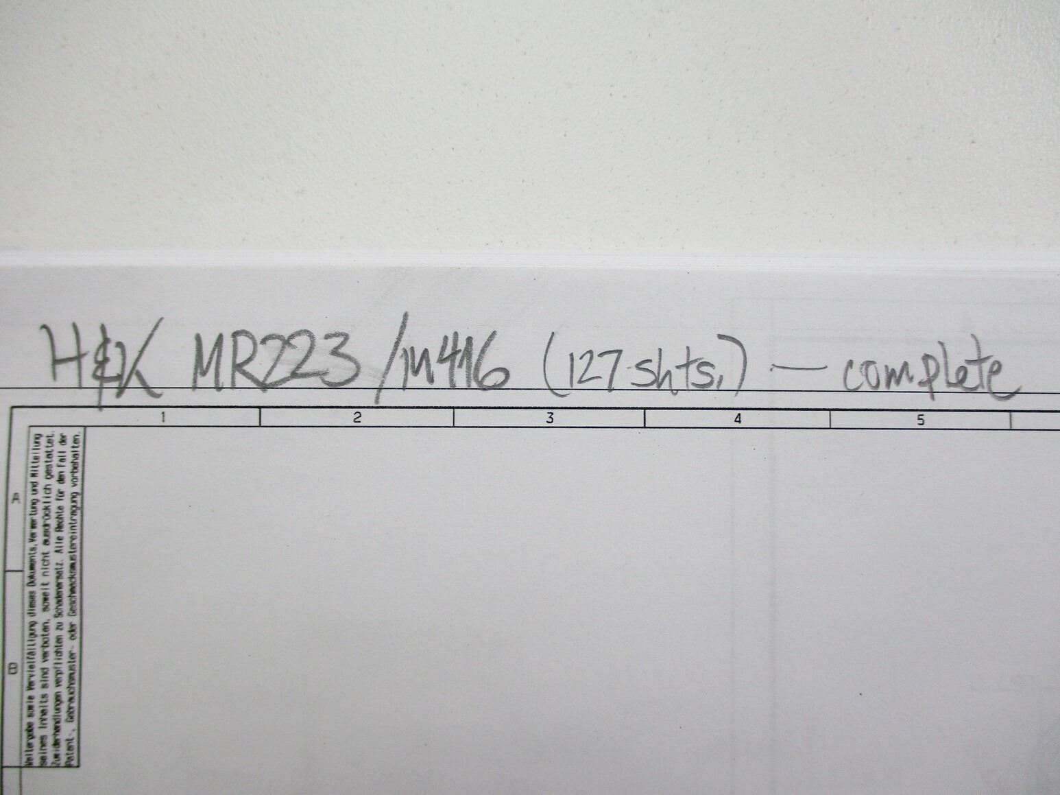H&K MR 223/M416 GUNSMITH DRAWINGS , 127 SHEETS, CONSIGNOR STATES COMPLETE.