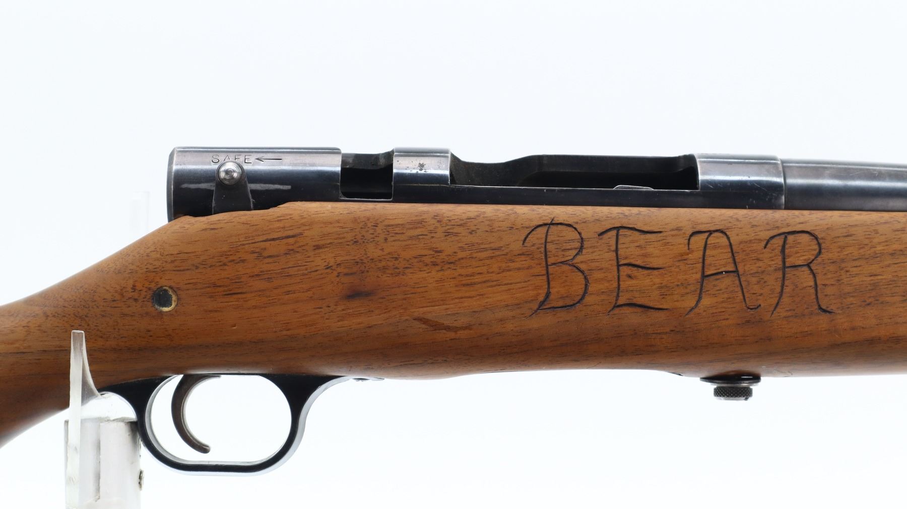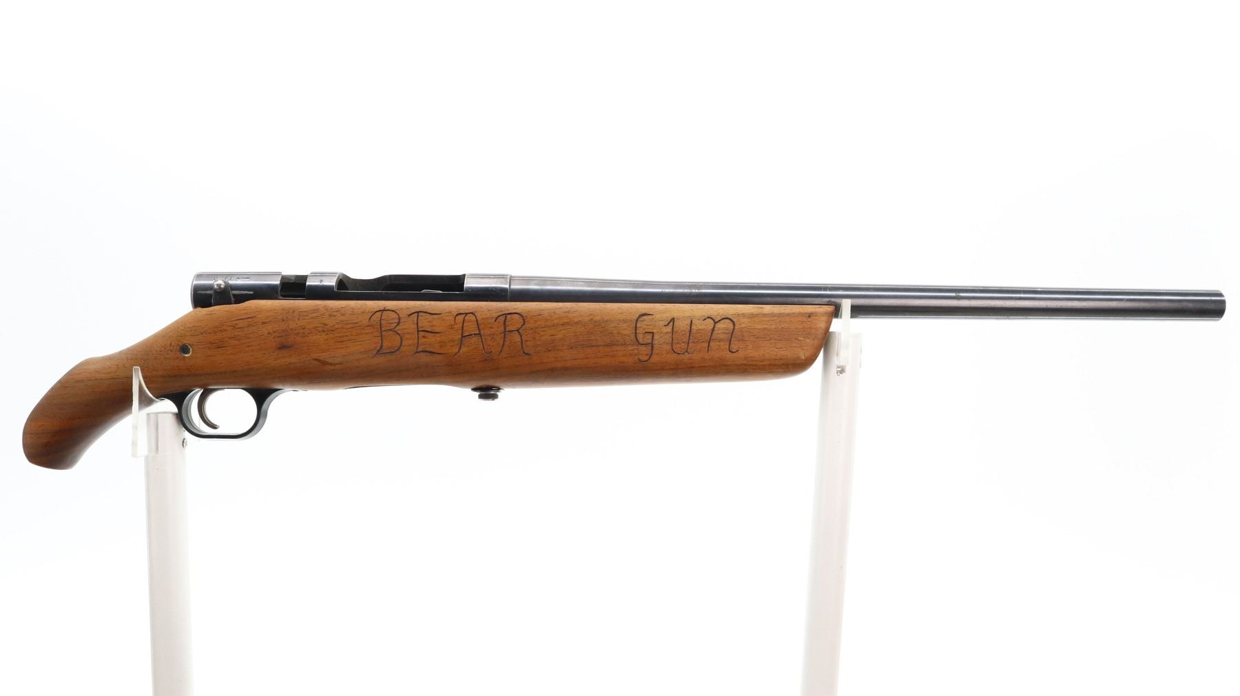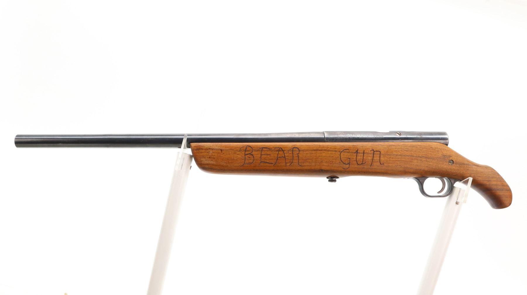 HARRINGTON & RICHARDSON , MODEL: 348 GAMESTER , CALIBER: 12GA X 2 3/4" , BORE IS GOOD. BARREL SHORTENED, NO BEAD, MISSING COMPLETE BOLT ASSEMBLY. ONE PIECE WOOD STOCK, SHORTENED AT PISTOL GRIP, 30.5" OAL. BOTH SIDES OF STOCK MARKED BEAR GUN. METAL FINISH SHOWS SCRATCHES, HANDLING MARKS AND WEAR. STOCKS SHOW DINGS, SCRATCHES AND WEAR. , ACTION: BOLT ACTION SHOTGUN , BARREL LENGTH: 19.5" , SERIAL # N/A , CONDITION: CONDITION: PARTS GUN, THIS ITEM IS SOLD FOR PARTS USE ONLY. SOME PARTS AND COMPONENTS MAY NOT BE PRESENT AND OR FUNCTIONAL. UNDER NO CIRCUMSTANCES ATTEMPT TO USE THIS ITEM AS A FUNCTIONAL FIREARM , CLASS: NON RESTRICTED CANADIAN CLASS